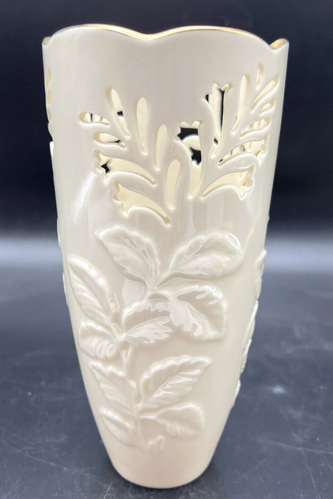 Vintage Lenox Lattice & Raised Leaf Vase 7 Inch 24 Gold Trim. Made in USA This vase is in Excellent pre owned condition from my dear friends collection . I will pack with care and get it to you ASAP Thank you for looking !