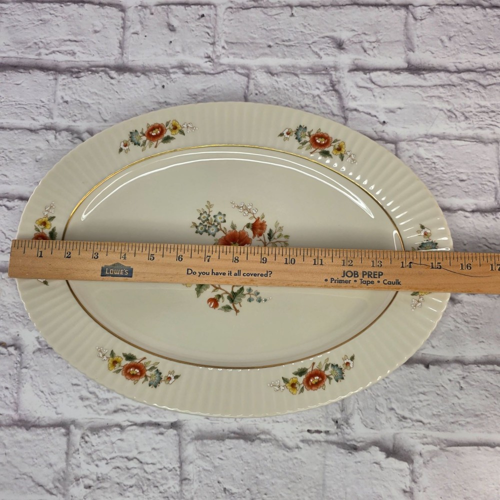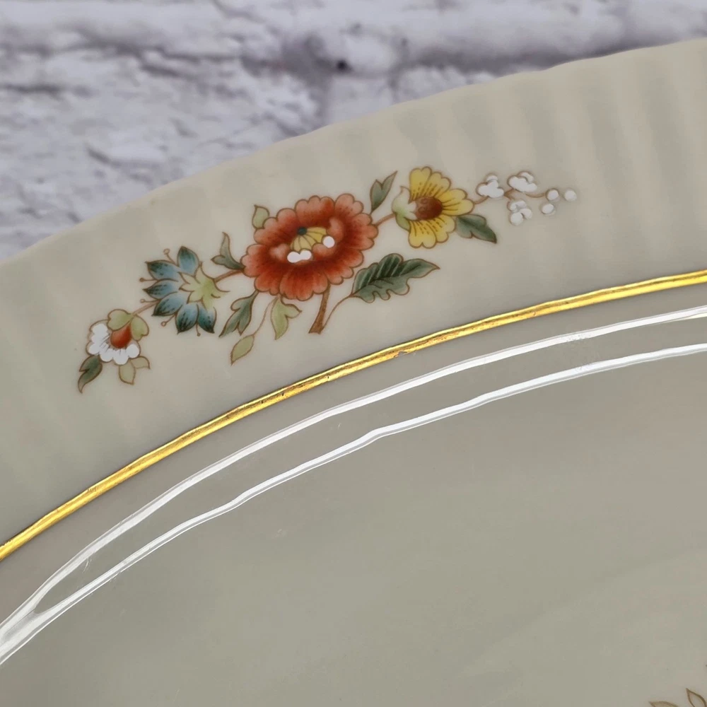 Vintage Lenox Oval Serving Platter 15.6" Porcelain Temple Blossom Floral Design USA Serve your favorite dishes with a touch of classic American elegance with this vintage Lenox "Temple Blossom" platter! 🤩 This isn't just a serving piece; it's a timeless work of art from a brand celebrated for its exquisite craftsmanship and enduring quality. A Look Back at a White House Favorite 🕰️ Lenox has been a symbol of American excellence since its founding in 1889. Renowned as the first American company to create an official White House state service, the brand's porcelain has graced presidential tables for over a century. The "Temple Blossom" pattern, produced from 1978 to 1991, perfectly captures the brand's tradition of creating sophisticated, beautiful dinnerware. Made with pride in the USA, this platter embodies the elegance and artistry that made Lenox a household name. What You'll Get 💖 Authentic Vintage Lenox: A genuine porcelain oval serving platter from the "Temple Blossom" pattern. Exquisite Design: Features a warm ivory base, stunning floral designs in orange, yellow, and green, and a sophisticated gold trim. Perfect Size: Measuring approximately 15.6 inches, it's ideal for serving roasts, vegetables, or a collection of appetizers. Durable & High-Quality: Made from premium porcelain, this piece is built to last and is a true collector's item. Made in USA: A piece of American craftsmanship that represents the brand's rich heritage. We are a small family business that is passionate about vintage treasures and providing top-notch service. We use recycled packaging materials to protect your purchase and the environment. 🌎 Buy with confidence and get this piece of American elegance delivered with FAST & FREE SHIPPING! 📦