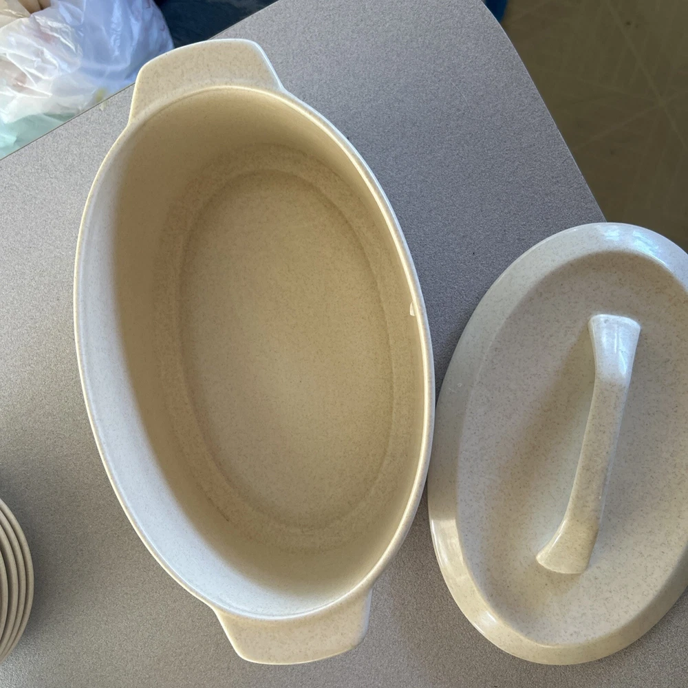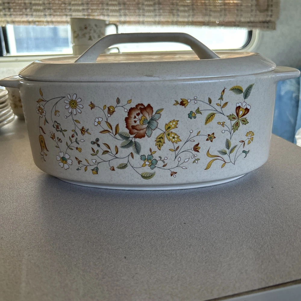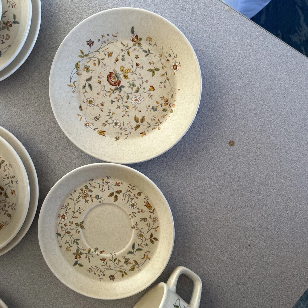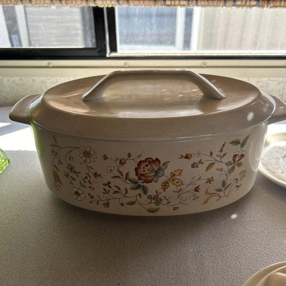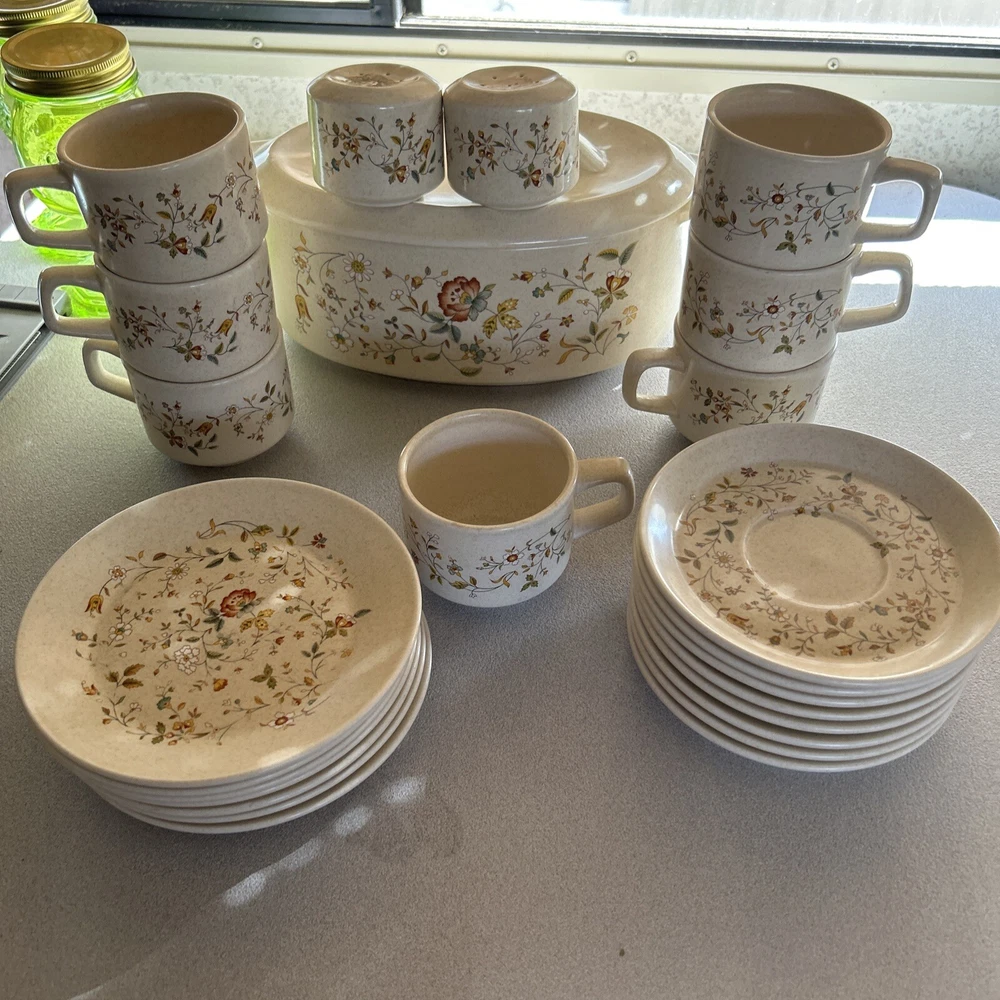 Add a touch of vintage charm to your dining table with this 25-piece set of Lenox Temper-ware Merriment. The set includes a variety of pieces such as salt and pepper shakers, plate set, serving bowl, side plate, and cup, all of which are crafted from high-quality stoneware and ceramic materials. The floral pattern and beige color give the set a timeless and elegant look that is perfect for any occasion. This Lenox dining set is made in the United States and has a rich history that dates back to America's past. The set is perfect for collectors and enthusiasts alike who appreciate the beauty and durability of vintage dinnerware. Whether you're hosting a formal dinner party or a casual family meal, this set is sure to impress your guests and make your dining experience memorable.
