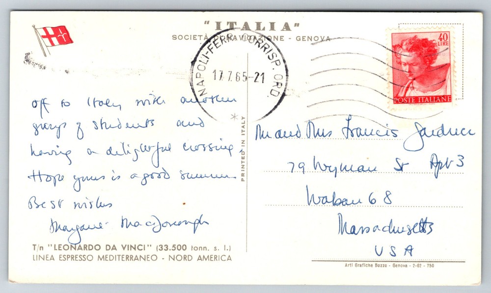 Vintage Leonardo Da Vinci Italia Mediterran Cruise Ship Ocean Liner Postcard Z12