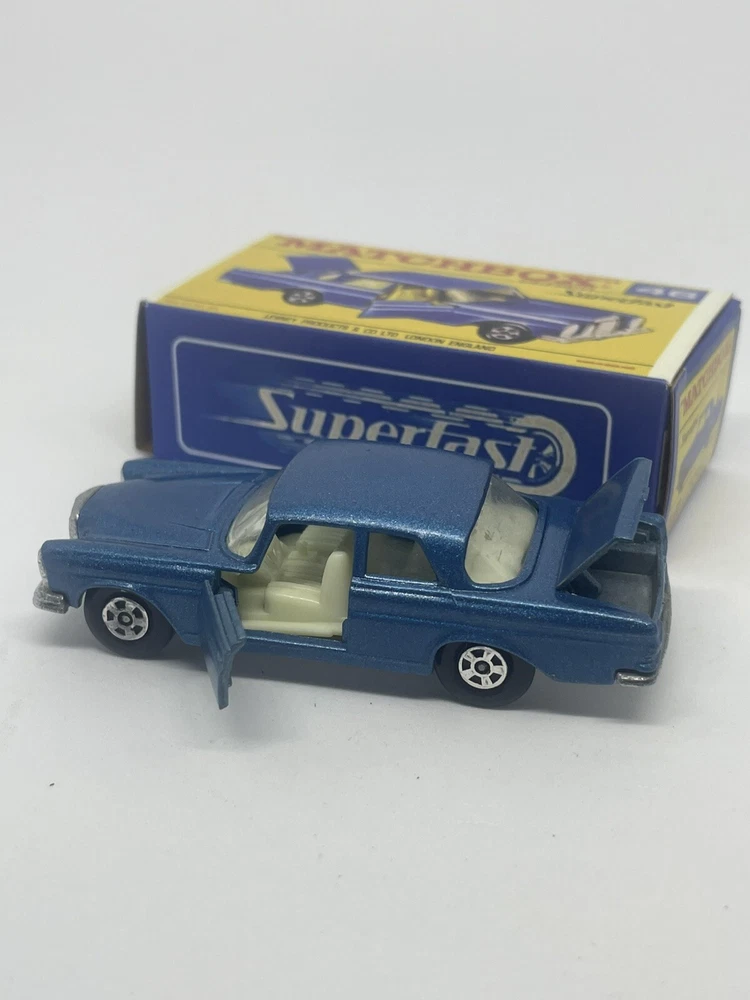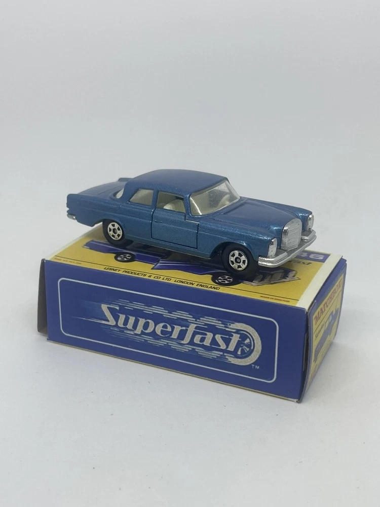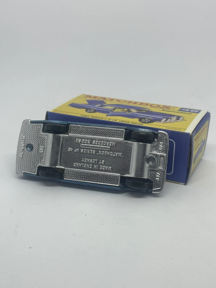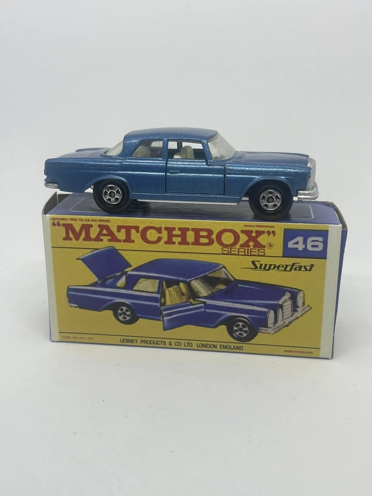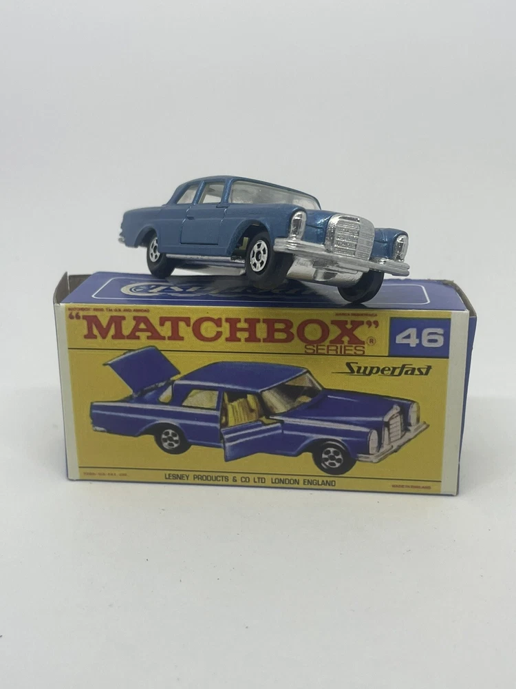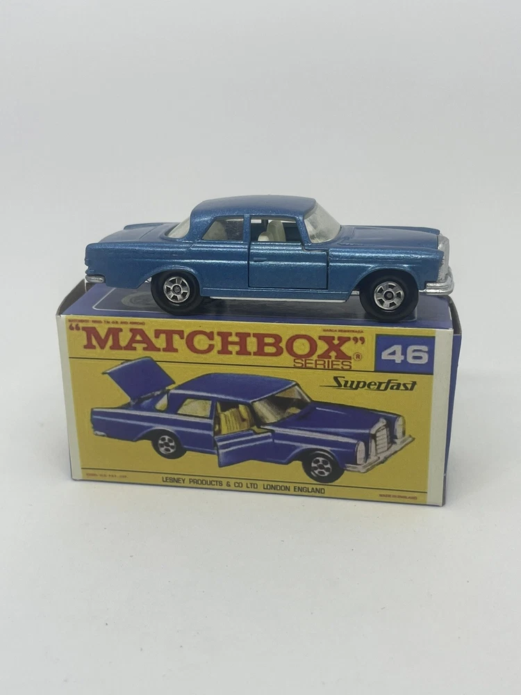 Vintage Lesney Matchbox 46 Custom Superfast Mercedes 300 se. RESTORED, NOT ORIGINAL. I restored the vehicle to a high standard with a new displayable storage Repro Box. These models and packaging are not original. Please look at the pictures carefully as they are part of the description. Please ask questions before bidding. I combine shipping with multiple orders. These are custom models so I do not except returns. This is a hobby and the vehicle was a used played with toy now restored.