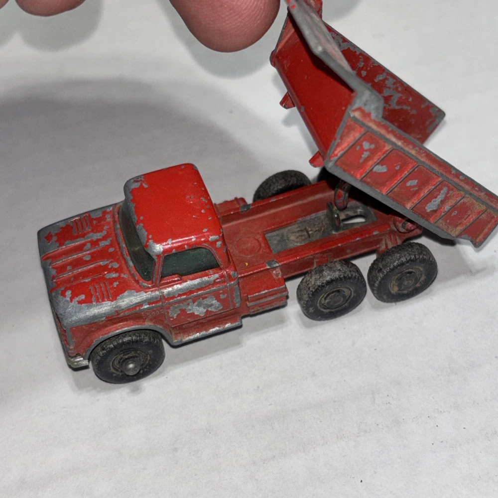 The Vintage Lesney Matchbox Dumper Truck No. 48 is a classic diecast toy car from the Matchbox 1-75 series. This red truck, part of the Series No. 40 models released in 1966, features a dumper design that echoes the real-life construction vehicles of its time. Made of durable diecast material, this collectible truck showcases the quality craftsmanship and attention to detail that Matchbox is known for, making it a sought-after piece for vintage toy car enthusiasts.