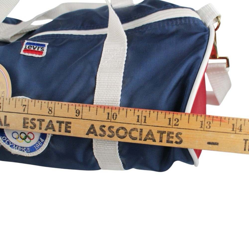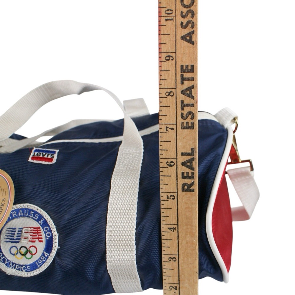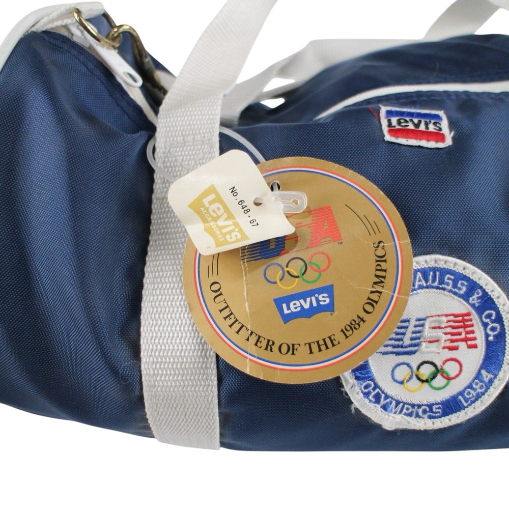 • Vintage Levi’s USA Olympics duffle bag • Official “Outfitter of the 1984 Olympics” branding • Navy blue body with red ends and white straps • Levi Strauss & Co Olympic patch on front • Original Levi’s tag still attached (deadstock feel) • Dual carry handles + detachable shoulder strap • Zipper top closure • Classic retro athletic/gym bag style • Rare collectible piece—great for vintage or Olympic collectors Condition: Excellent vintage condition.