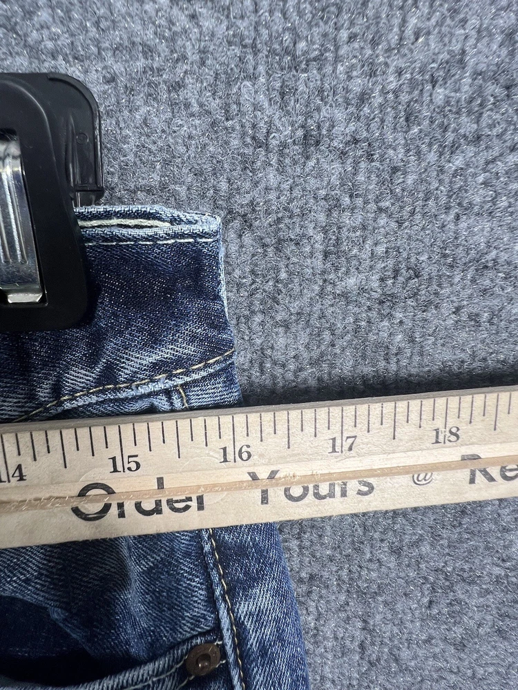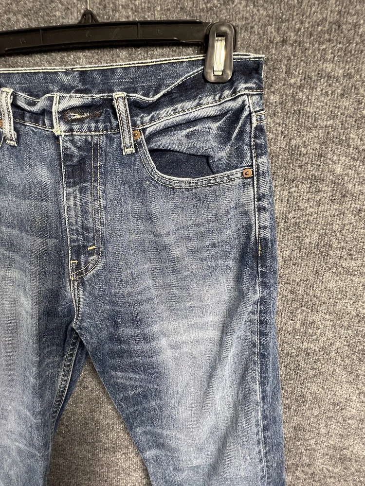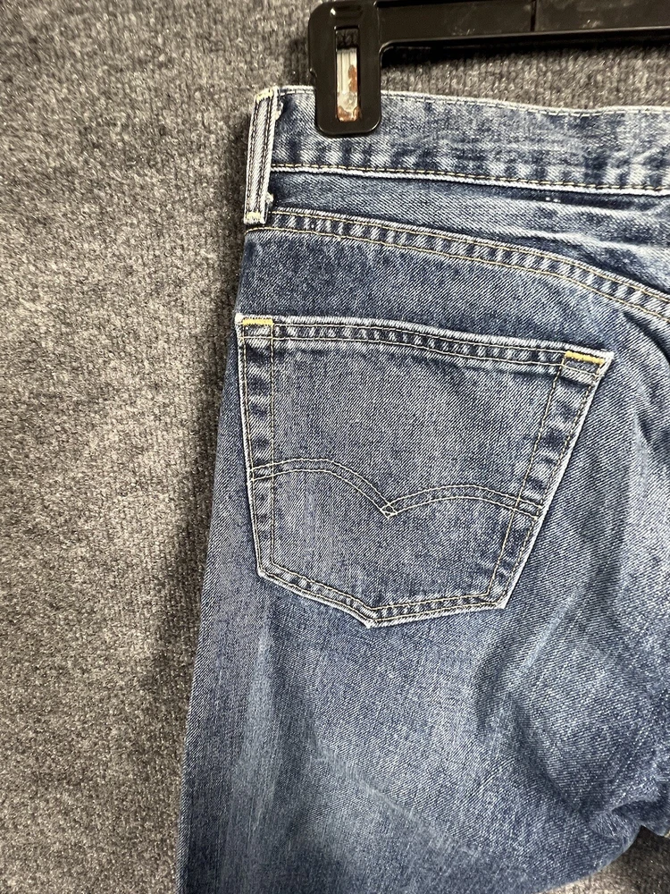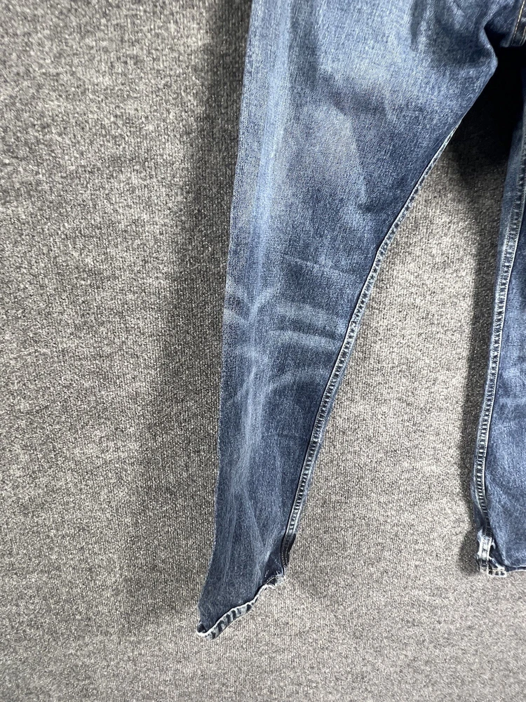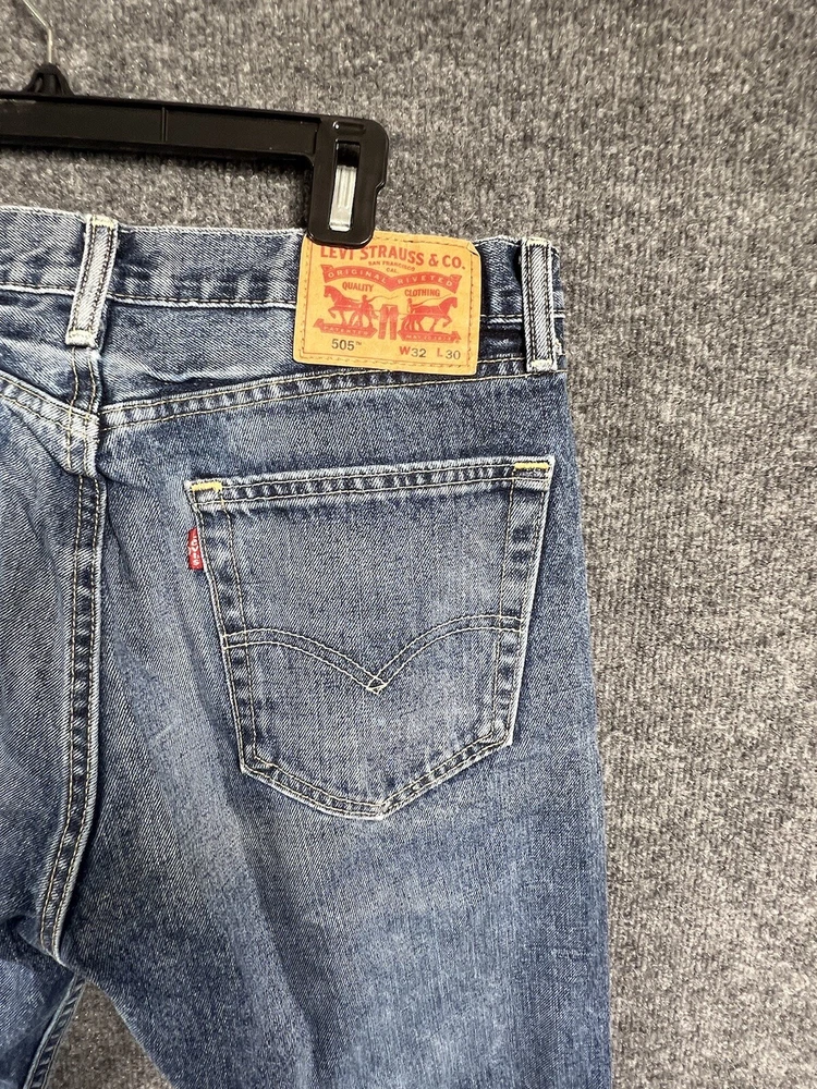 Elevate your style with these vintage Levi's 505 jeans in classic blue. With a regular fit and straight cut, these jeans are made from durable cotton denim and feature a 5-pocket design with a coin pocket. The button and zipper closure adds a touch of sophistication, while the iconic Levi's logo accents the garment. These jeans are machine washable for easy care and come in a size 32 x 30. Perfect for any season, these Levi's 505 jeans are a must-have for any fashion-forward individual.