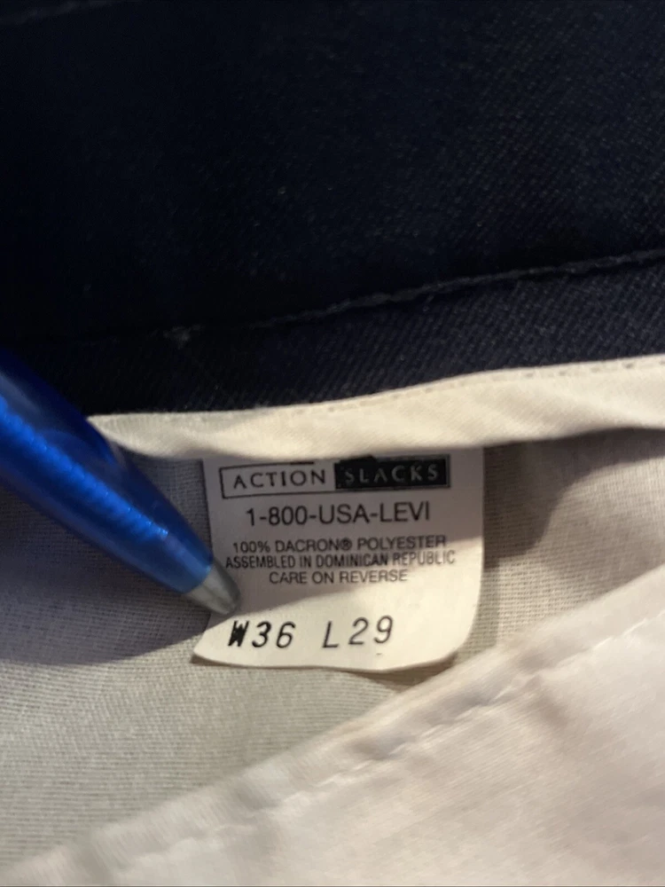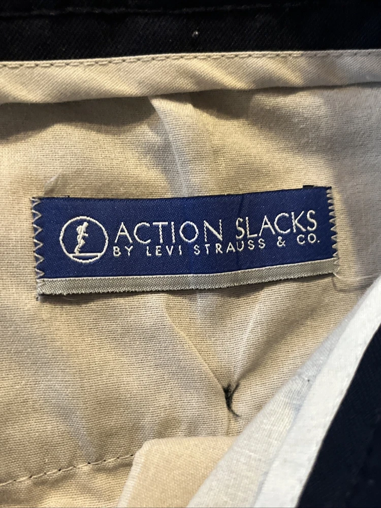 Vintage Levis Action Slacks Men’s 35x28 Navy Flat Dress Pants Dacron Polyester