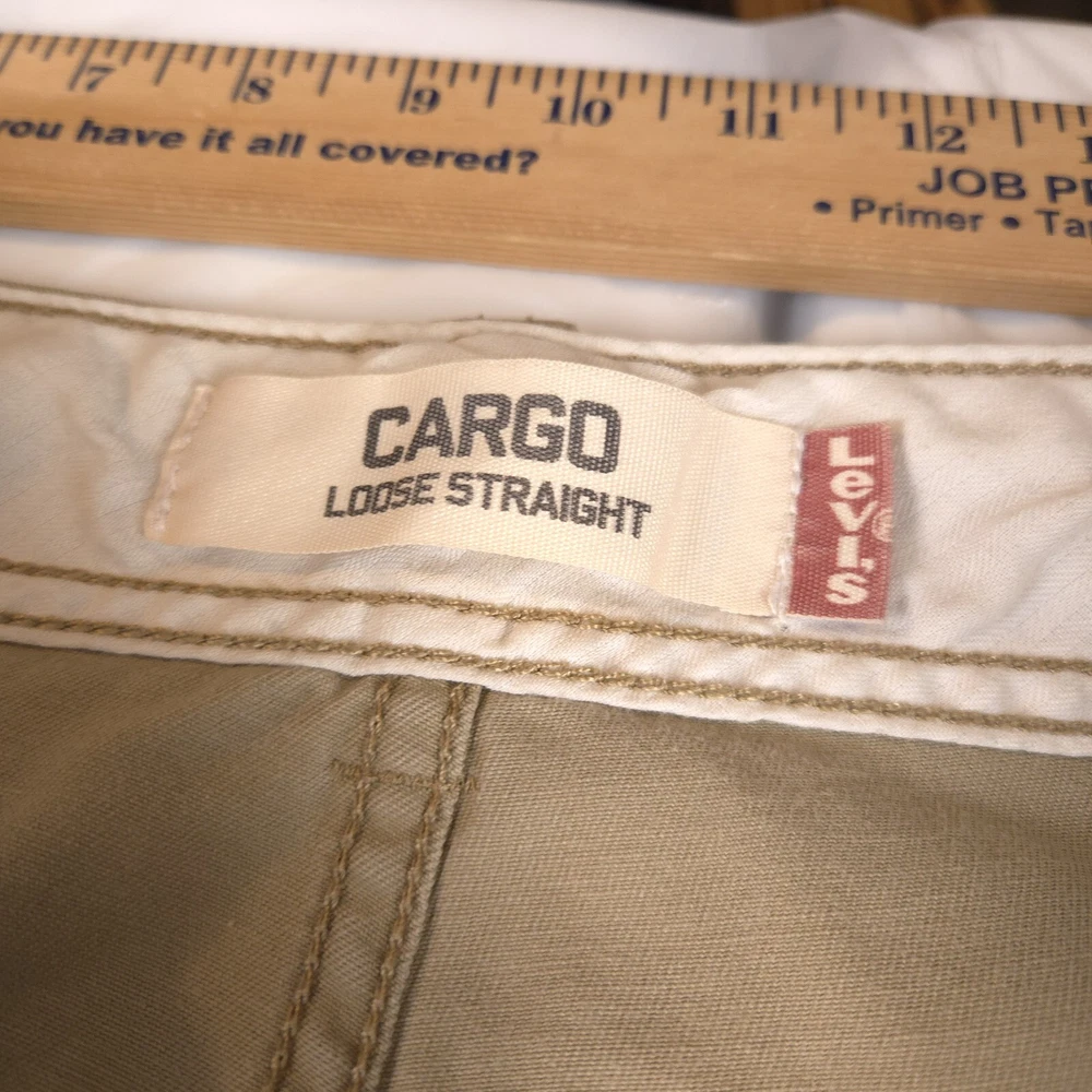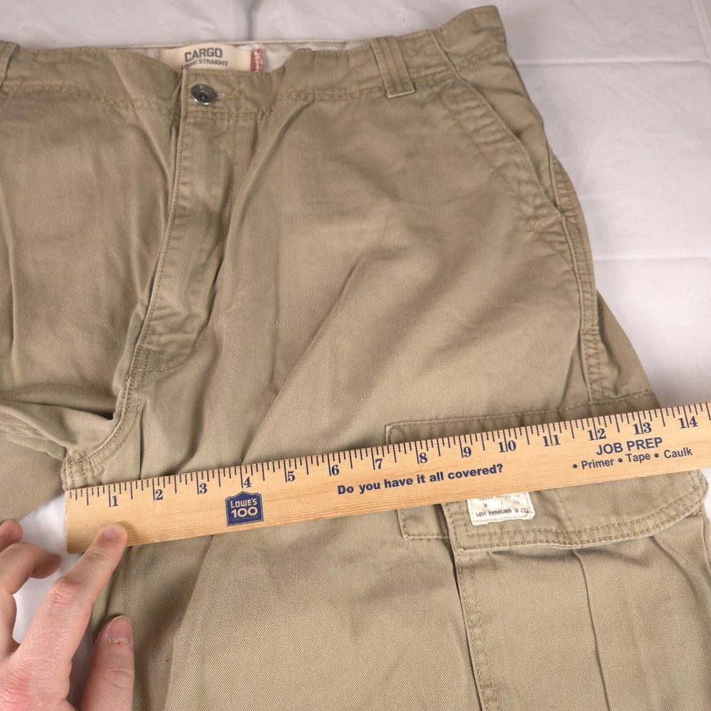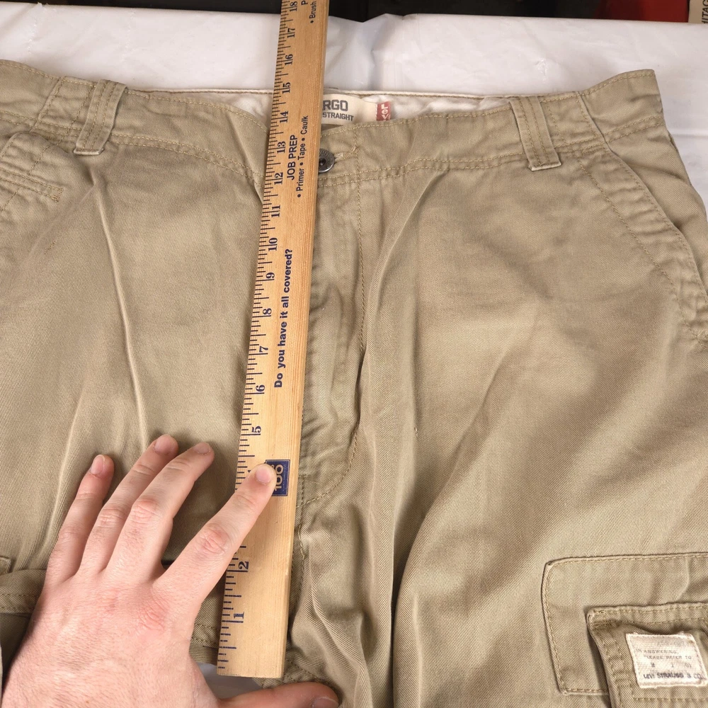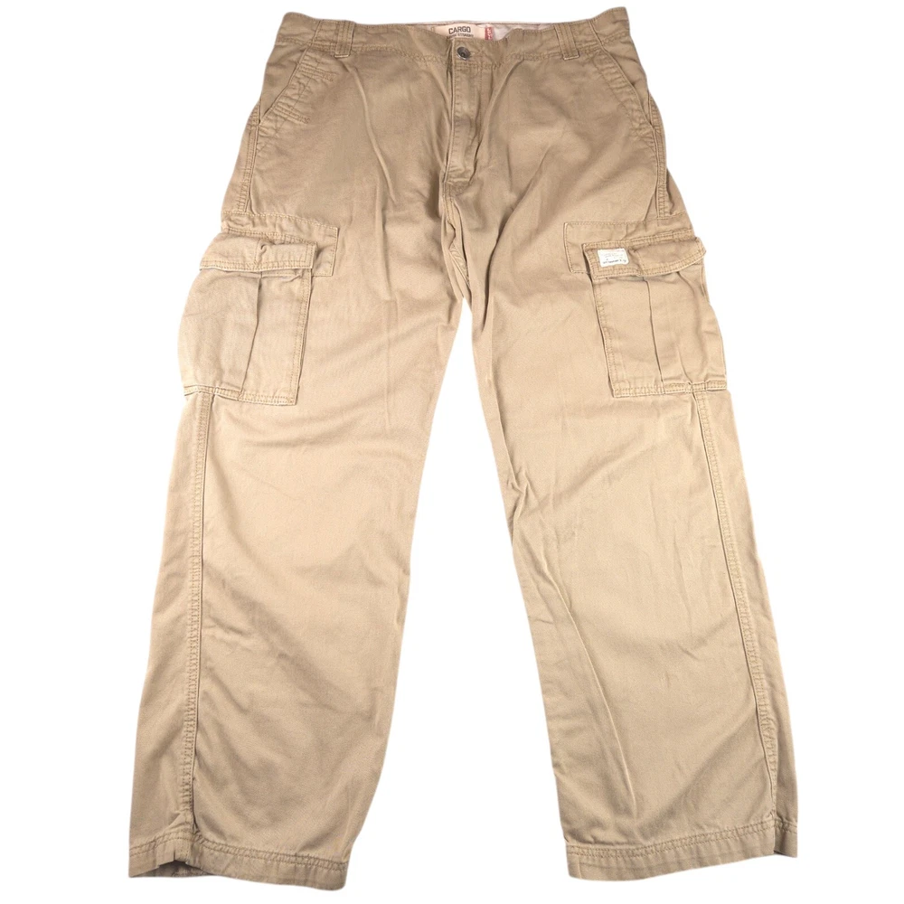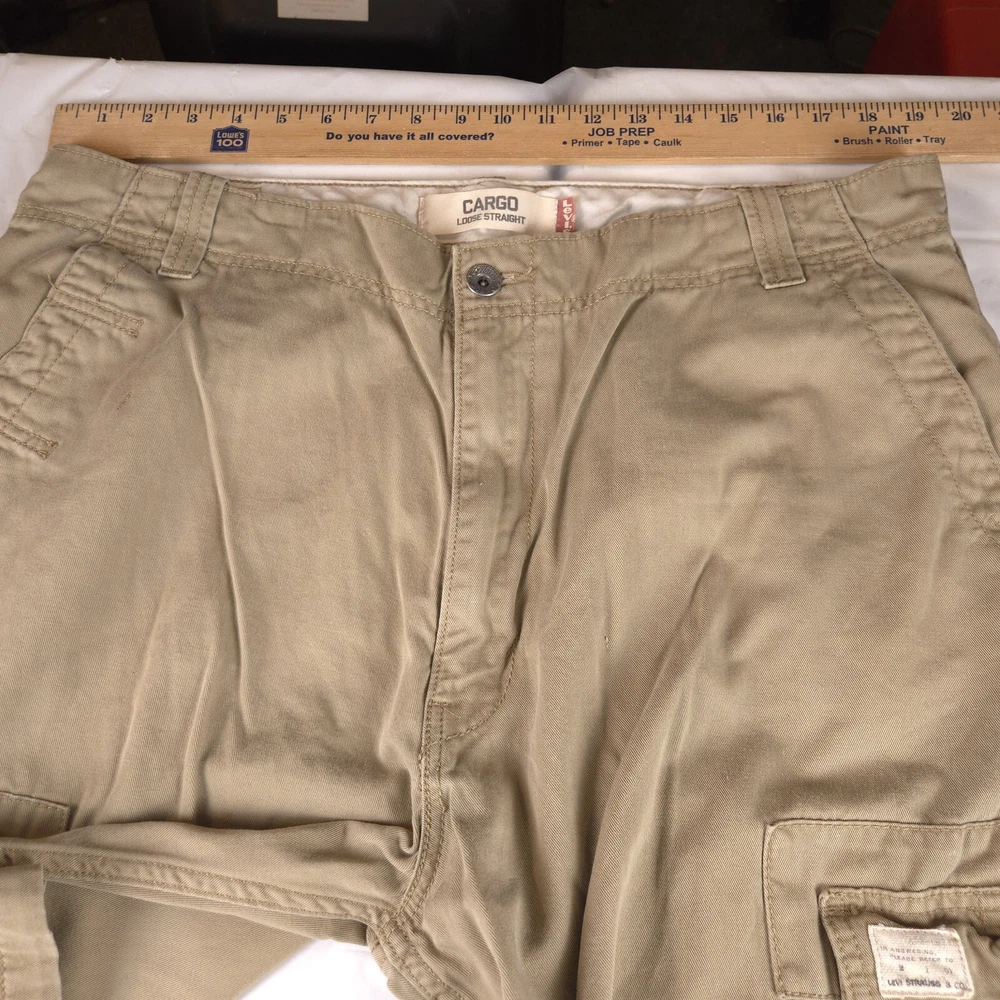 Has stains shown in pics 3 and 6. Has heel drag shown in photo 5. Tagged size 38x32 see photos for measurements to determine proper fit before buying. Thanks.