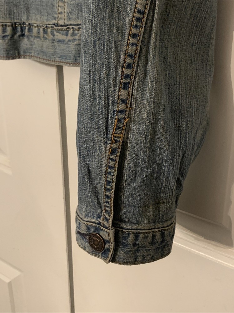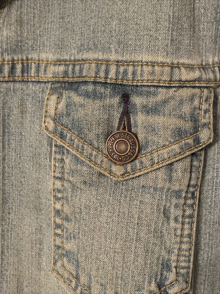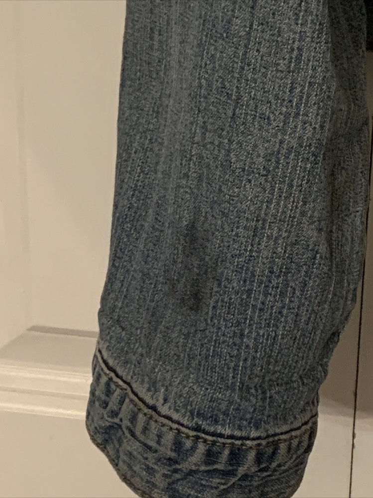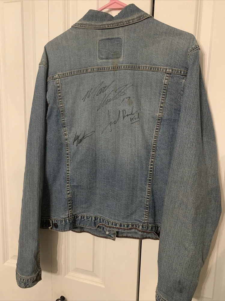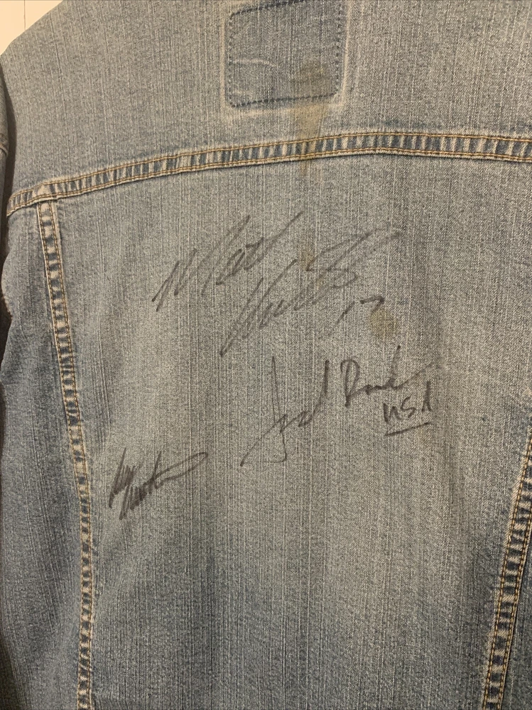 Good condition. Jacket has a few small stains. Tag has been removed so unsure of the size. Please check out pictures. This Women's Levi Jean Jacket is a must-have for any NASCAR fan. The jacket is signed by Roush Racing Owner Jack Roush and drivers Matt Kenseth, and Mark Martin, making it a unique and valuable piece of fan apparel. It is made in the United States and features a blue color with size M fitting for women. The jacket is perfect for auto racing enthusiasts and includes details like the team, Roush Fenway Racing, and the league, NASCAR. The brand of the jacket is Levi's, which is known for high-quality clothing. Fans can proudly display their support for their favorite drivers while wearing this jacket.