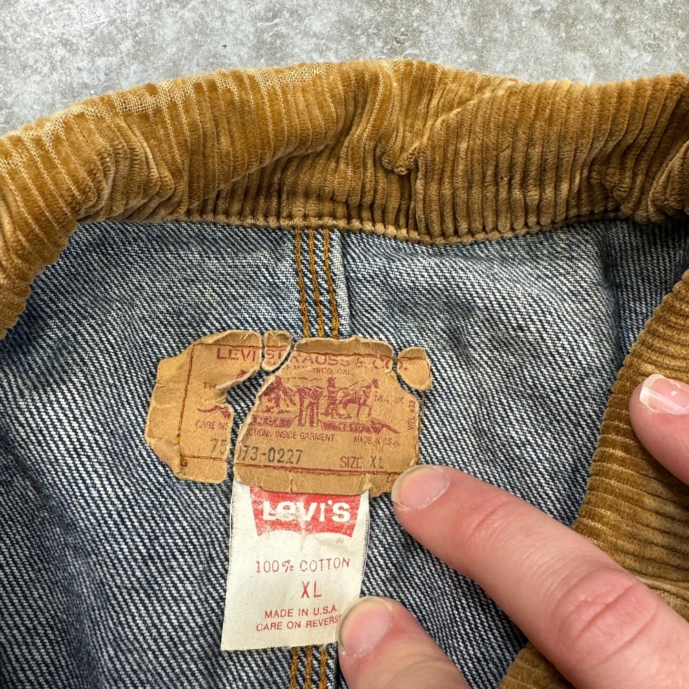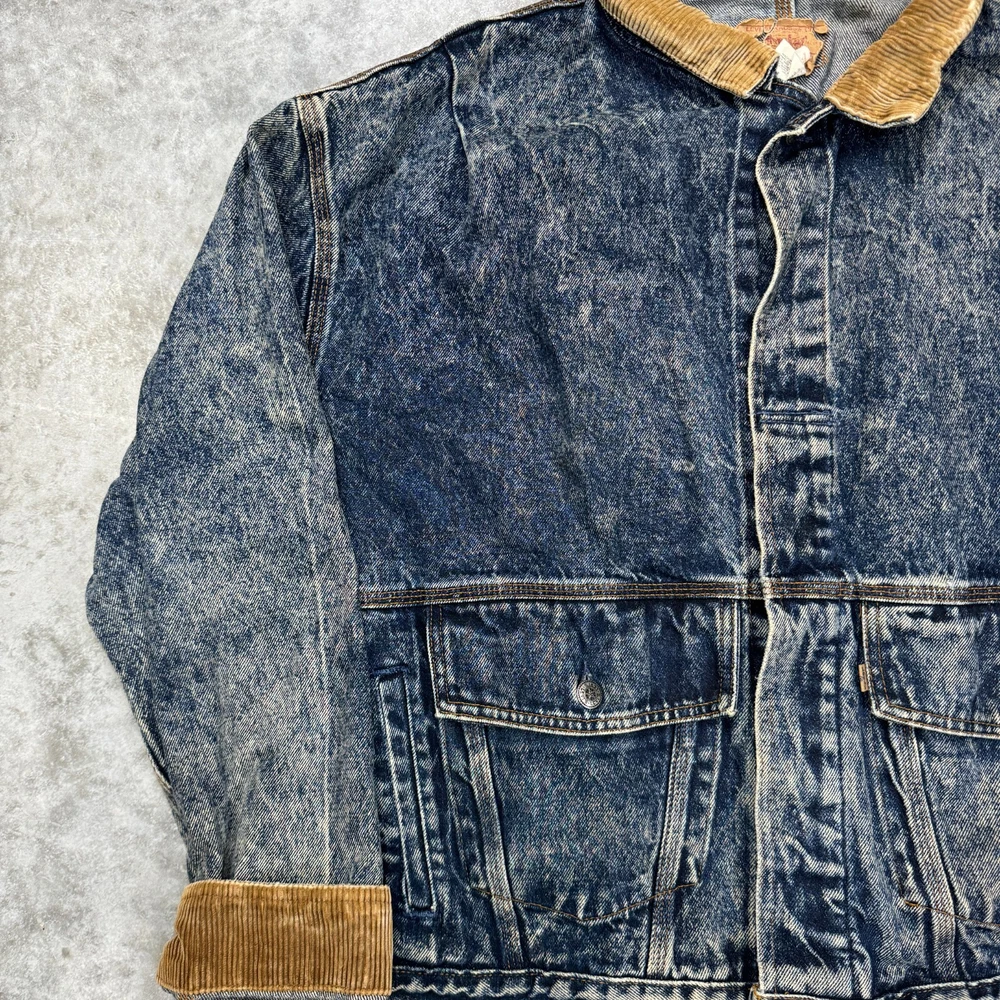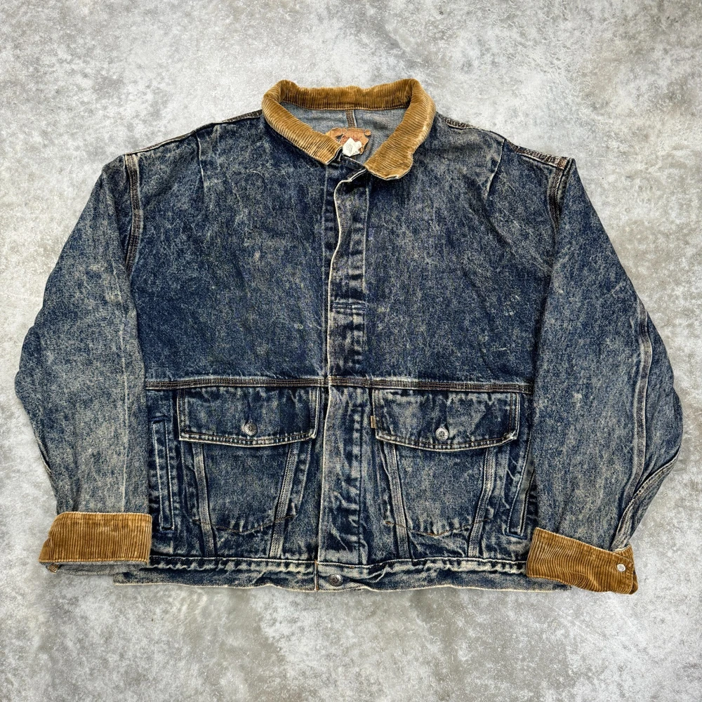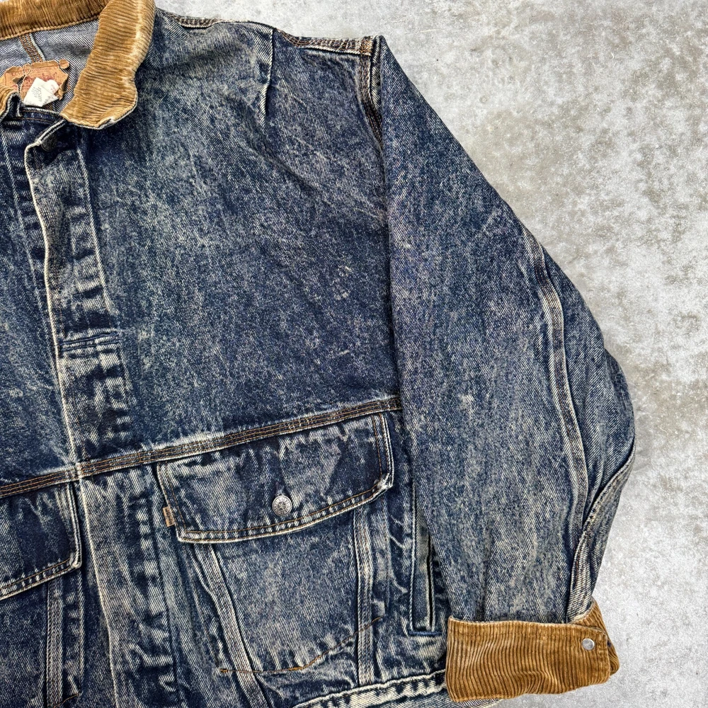 Vintage Levis Mens XL Blue Acid Wash Denim Jacket Corduroy 75073 0227 Buckleback