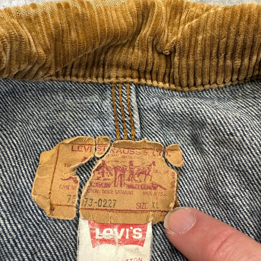Seller Notes: “very good!” Lining Material: Cotton Garment Care: Machine Washable Pattern: Solid Outer Shell Material: Cotton Theme: Cowboy, USA Country/Region of Manufacture: United States MPN: 0227, 75073 Model: Levi's Trucker Vintage: Yes Size: XL Color: Blue Season: Fall, Spring, Winter Department: Men Performance/Activity: Hiking, Riding, Walking Fabric Type: Denim Style: Jacket Size Type: Regular Insulation Material: n/a Closure: Button Occasion: Casual, Party/Cocktail, Travel Product Line: levis Accents: Button, Logo Type: Jacket Brand: Levi's Features: Collared, Pockets Fit: Classic