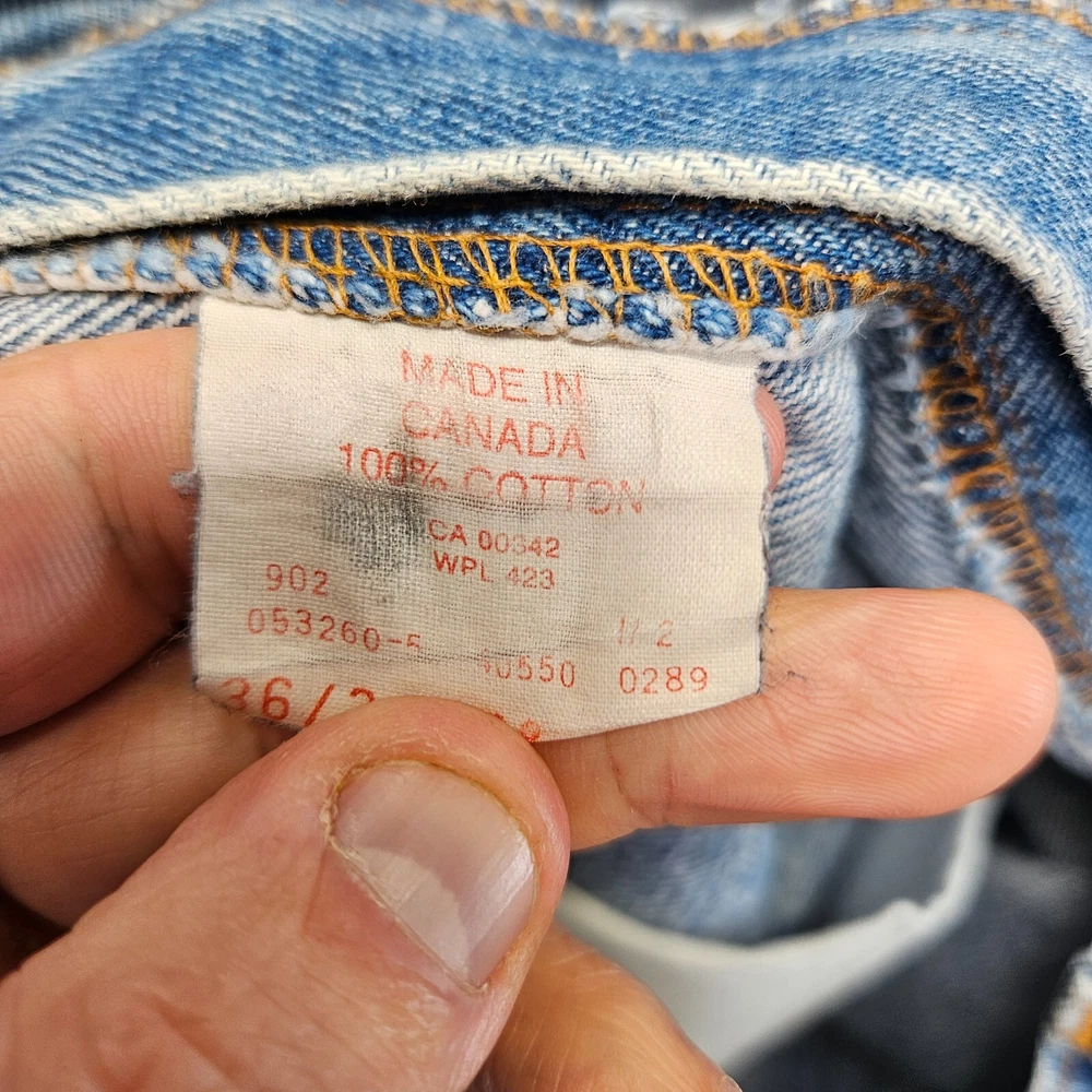Vintage Levis Orange Tab Tapered Blue Denim Jeans 36x30 Made in Canada