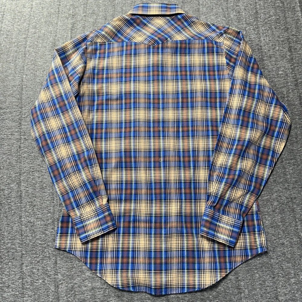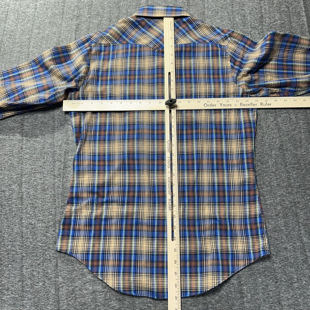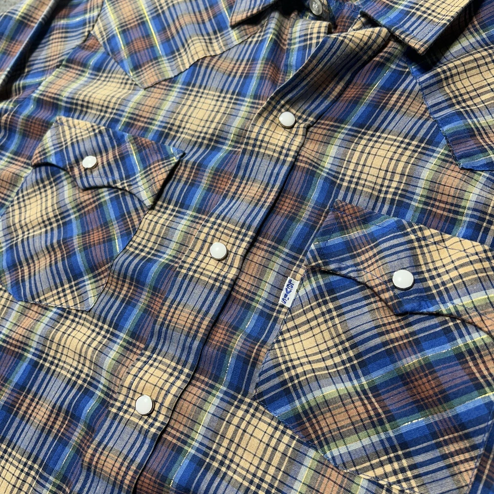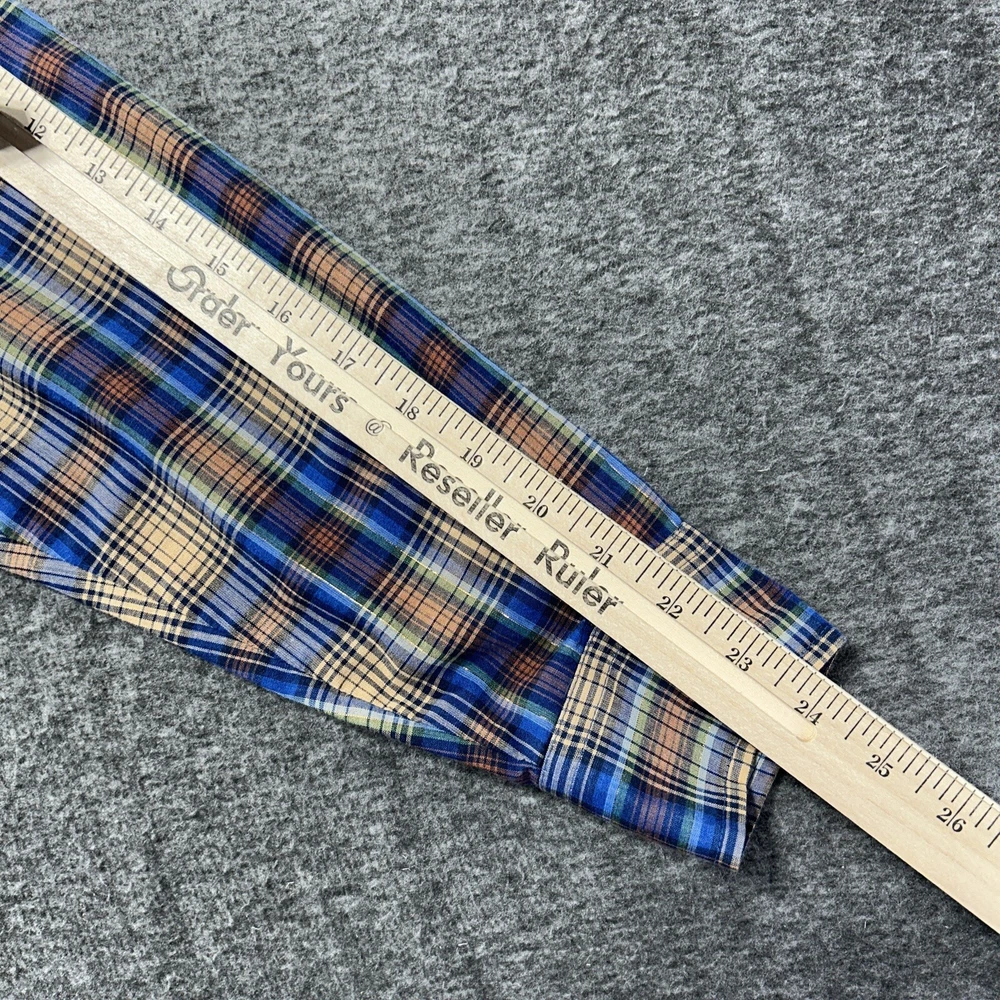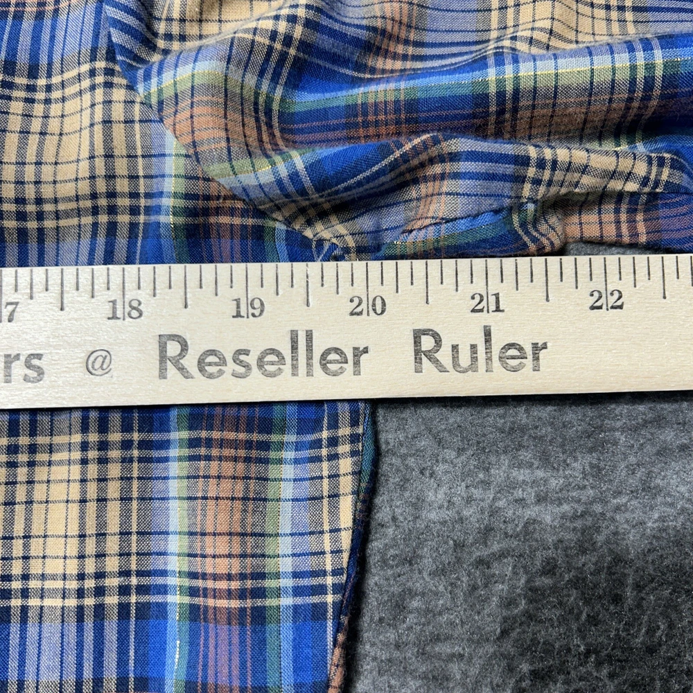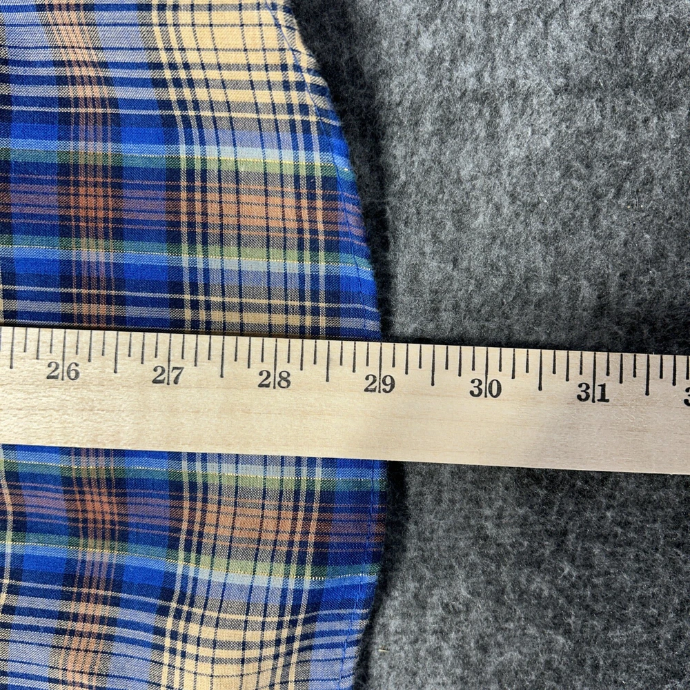Good condition shirt. It's a thin shirt as it is vintage. No holes rips or stains. Plaid includes a metallic shiny thread. Measurements in photos. Ships out next day 30 day return policy applies Thanks