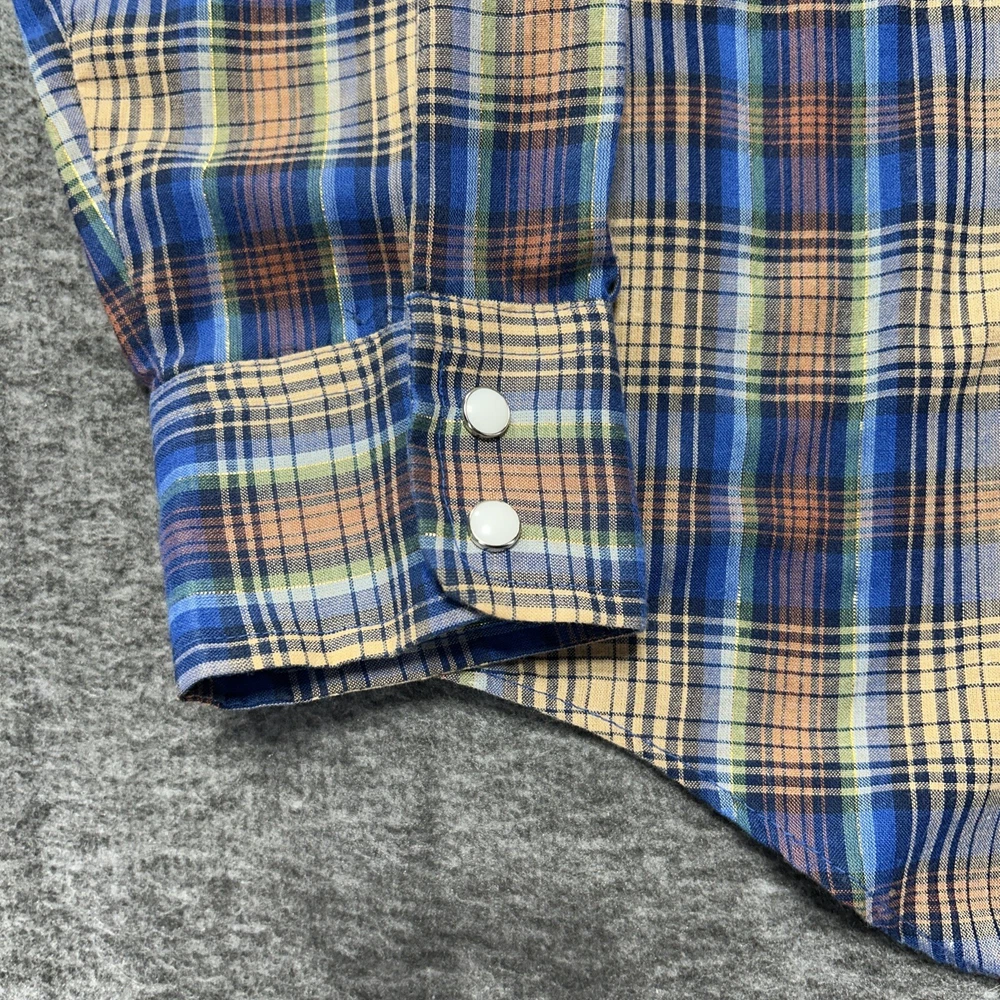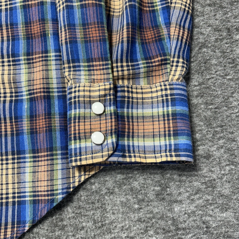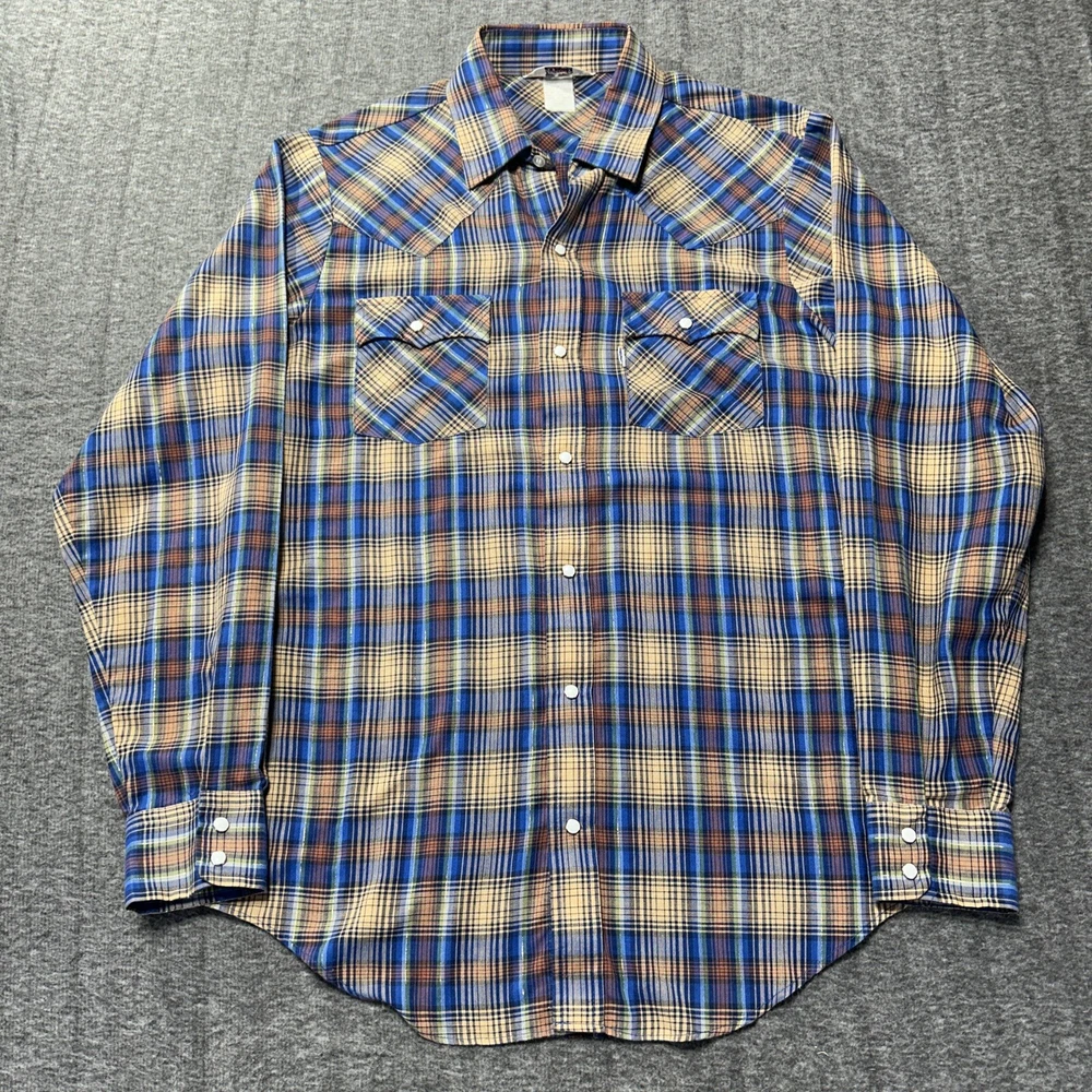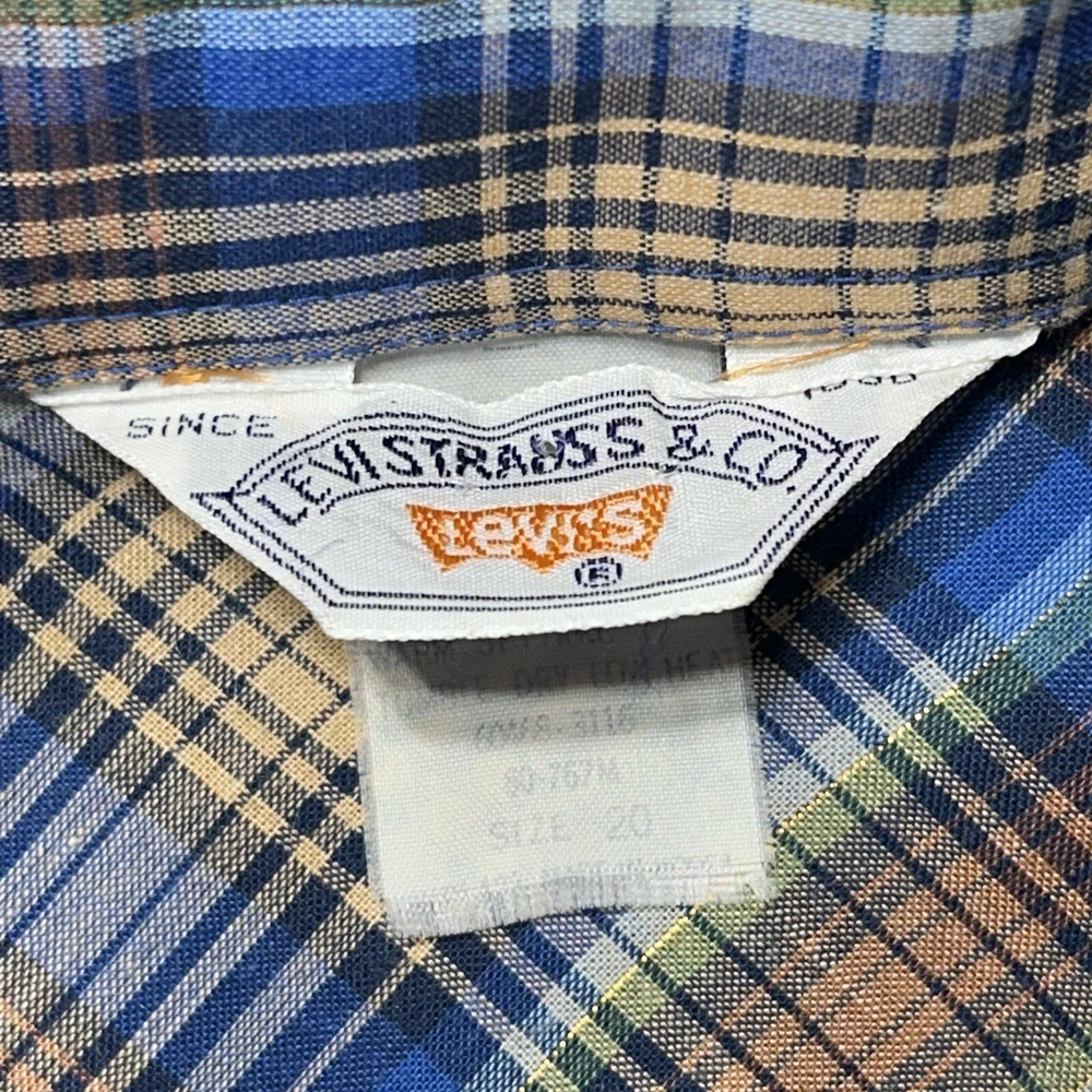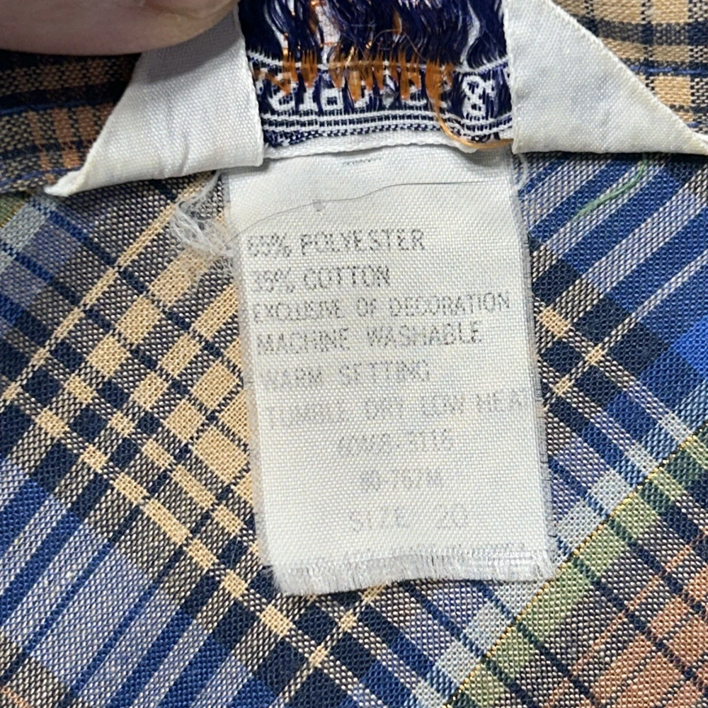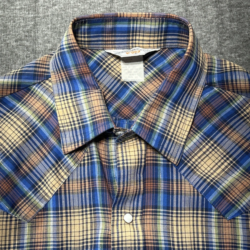 Good condition shirt. It's a thin shirt as it is vintage. No holes rips or stains. Plaid includes a metallic shiny thread. Measurements in photos. Ships out next day 30 day return policy applies Thanks