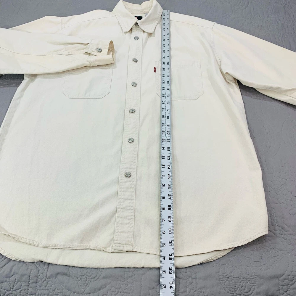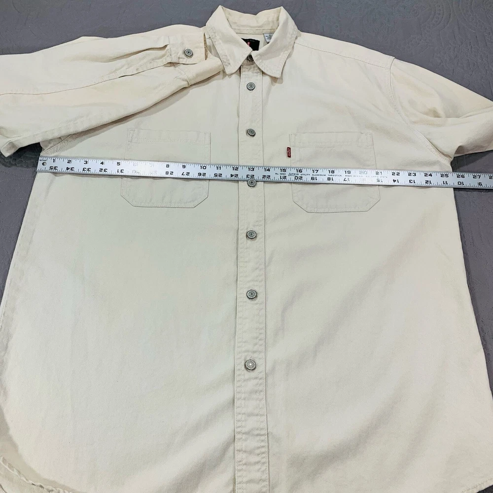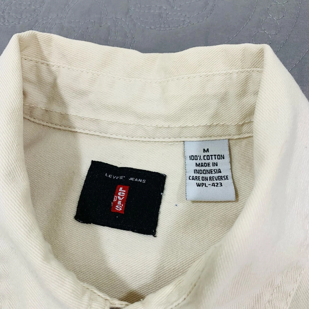 Brand---Levis Color---Cream Stains or Holes---Some small spots on this, please see pictures Tagged Size---Medium Actual Measurements--- Please see pictures for actual measurements Fabric Content---Cotton Please check out my other listings and bundle for a better price and shipping discount.