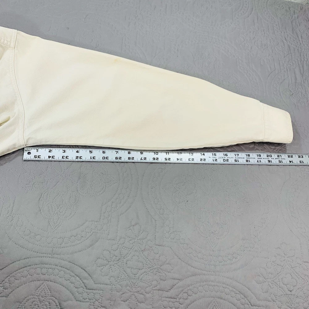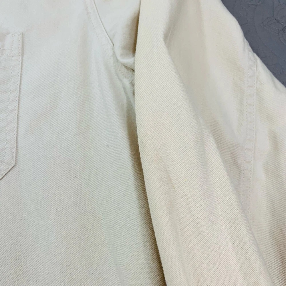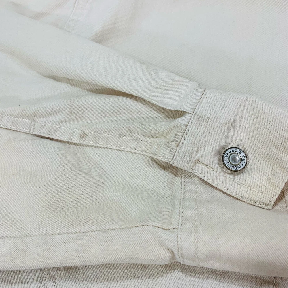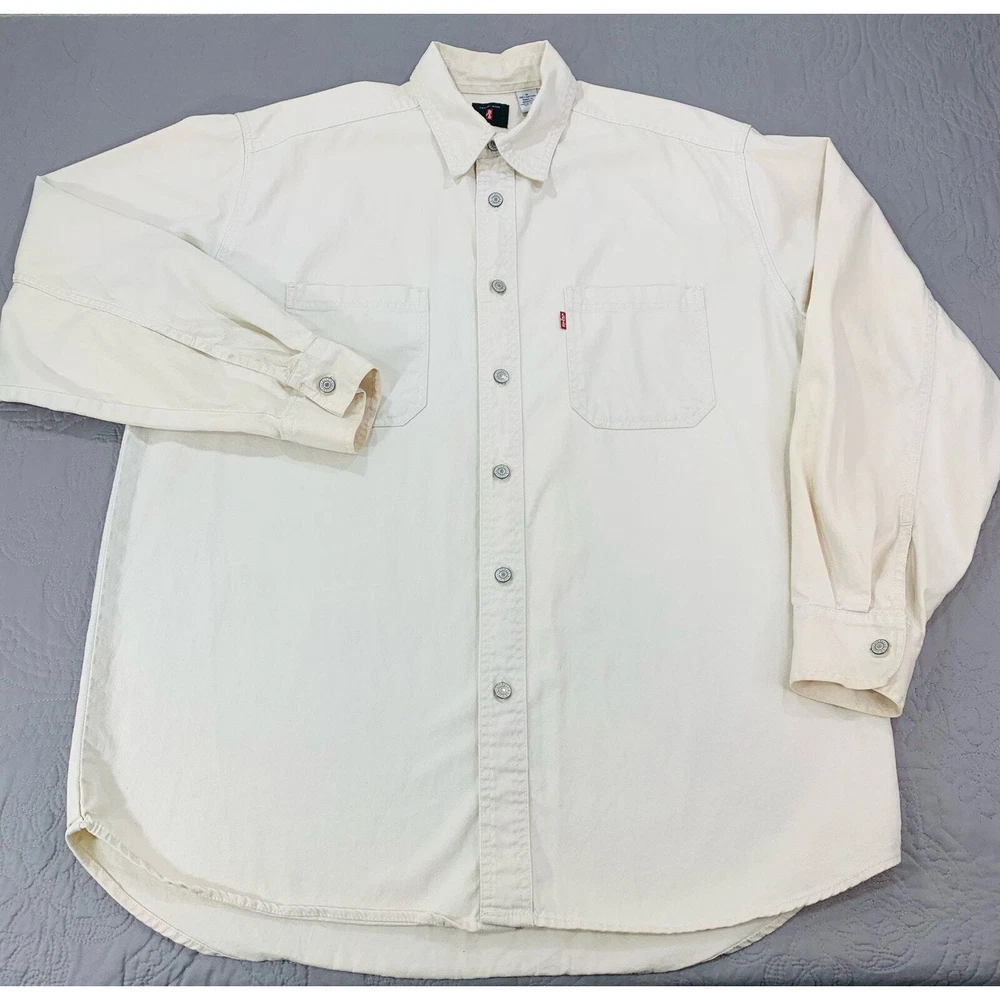 Brand---Levis Color---Cream Stains or Holes---Some small spots on this, please see pictures Tagged Size---Medium Actual Measurements--- Please see pictures for actual measurements Fabric Content---Cotton Please check out my other listings and bundle for a better price and shipping discount.