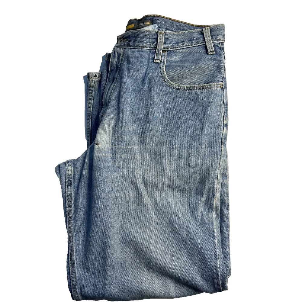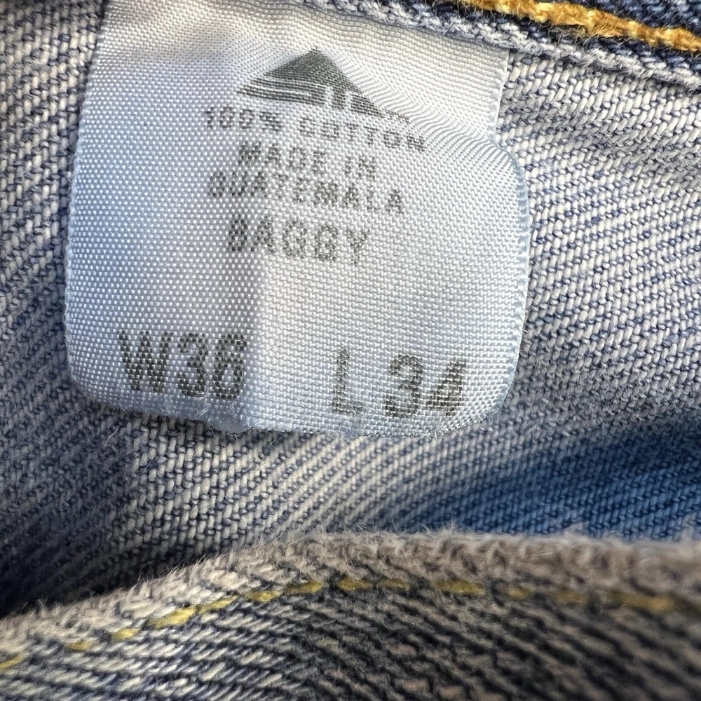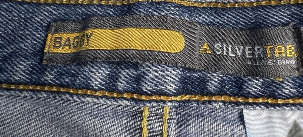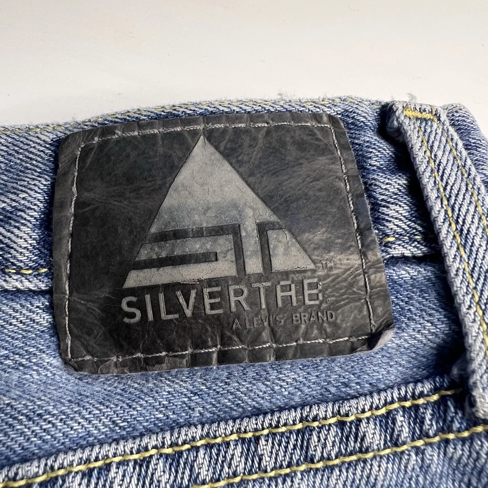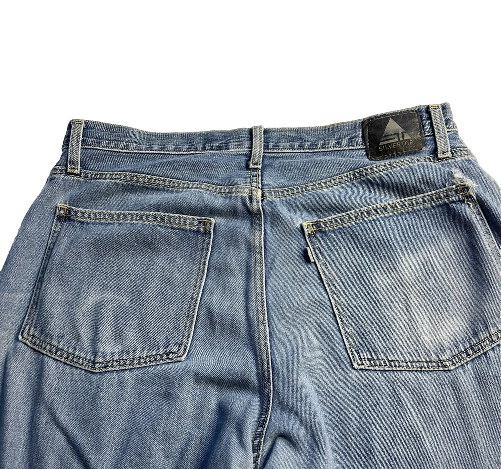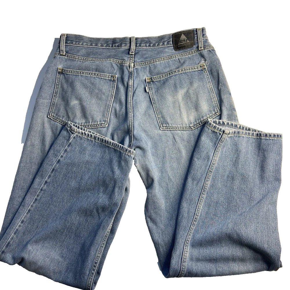 Vintage Levis SilverTab Jeans Men 36x34 Baggy Denim Grunge Y2K Skater These jeans are faded and distressed. There are some holes and patches inside the jeans to try and cover the holes. There is a rip by the back pocket. The crotch area is worn and has holes. Please view photos for condition.