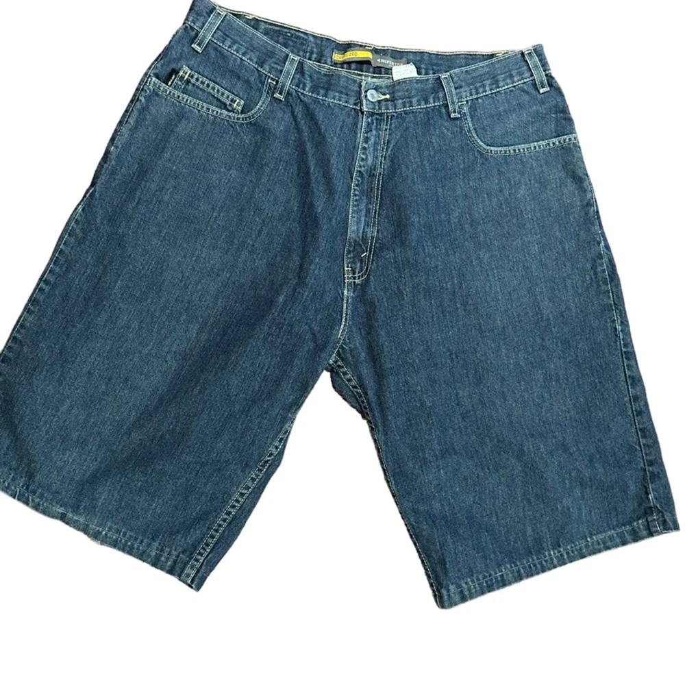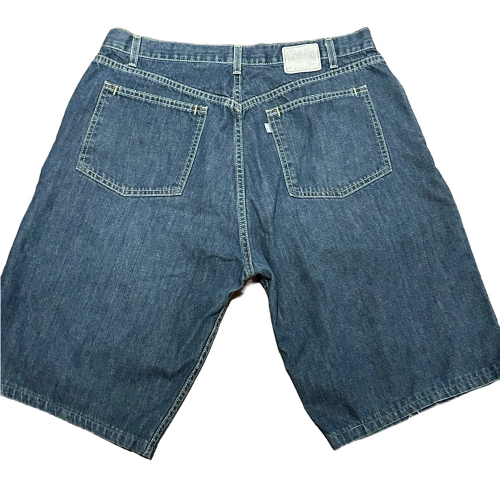 This is a vintage pair of oversized SilverTab shorts in a size 38. They were jeans that had been cut off to a 13” inseam. In great condition