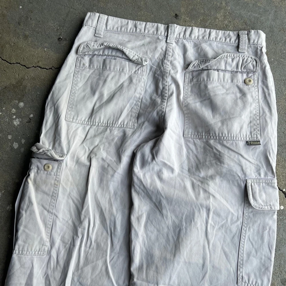 Vintage Levi’s silvertab khaki cargo baggy Y2K pants. Great pair! Minor yellow spots. Measure 35x28 and a 9.75 leg opening. Please check measurements before purchasing. I do my best to show any flaws in pictures. Quick shipping! Bundles encouraged! @ants_haul on Instagram.
