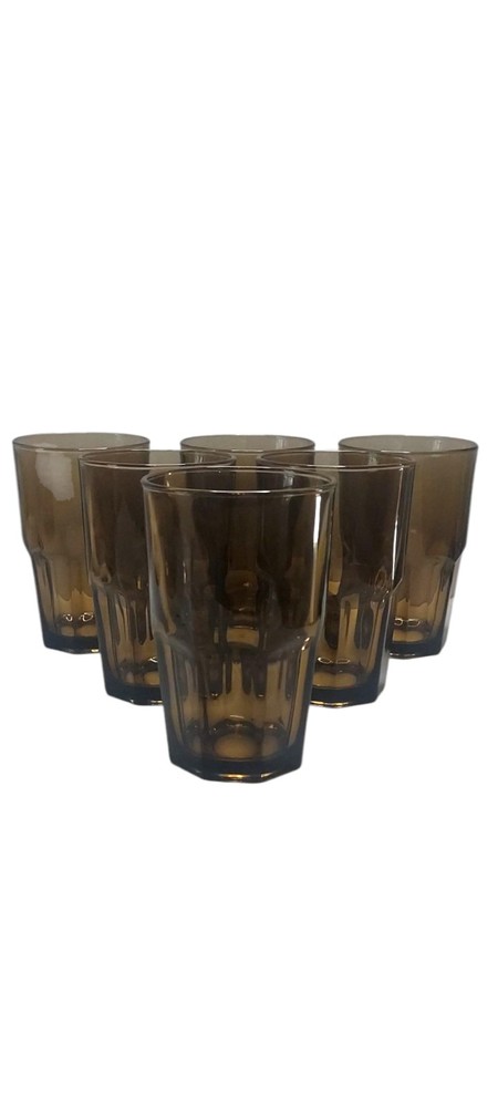 Vintage Libbey Boston Mocha Crisa set of six retro paneled tumbler glasses. These glasses are preloved & show some minor wear. They are not perfect but in good condition, functional & display well. There are a few small surface scratches as shown in the last picture & reflected in the price. Otherwise, there is no damage, such as chips, cracks, or water damage. These measure approximately 5" tall & 3½" wide, holding 14oz. This set will ship with care, fast & FREE! If you have any questions or would like more pictures of a certain angle I may have missed just reach out & I will reply promptly. Thank you!
