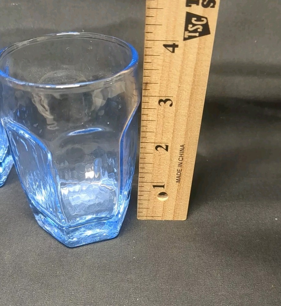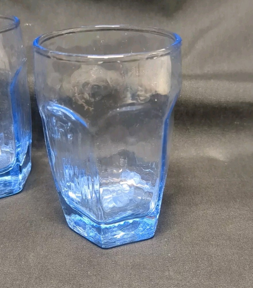 Add a touch of vintage charm to your drinkware collection with this set of 5 glassware from Libbey's Chivalry pattern. The green geometric glasses are perfect for all occasions and have a capacity of 5 oz. These glasses are dishwasher safe, making them easy to clean and maintain. The set includes four glasses and is an original vintage piece, making it a great addition to any collection. The textured hexagonal design adds a unique touch to your table setting and is sure to impress your guests.