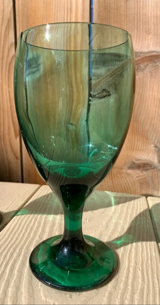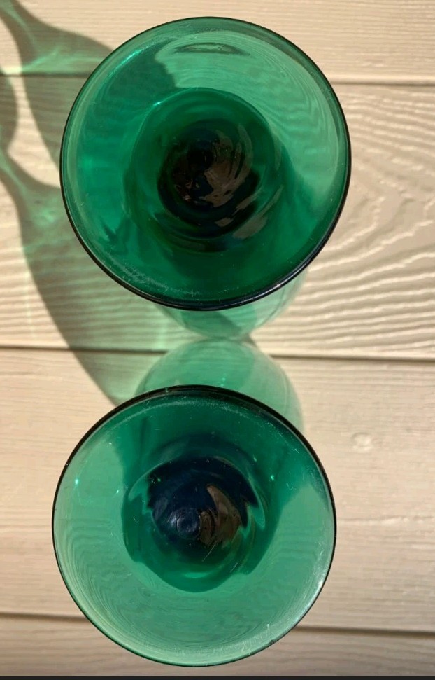 Vintage Set of 2 Libbey Juniper Green Glasses Goblets Teardrop Holiday Glasses. Condition is Used. Shipped with USPS Ground Advantage.