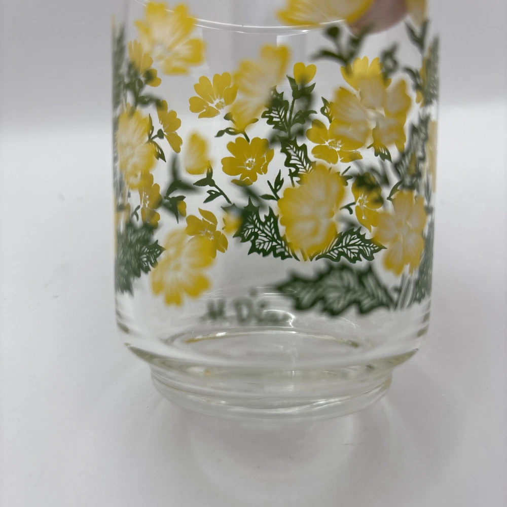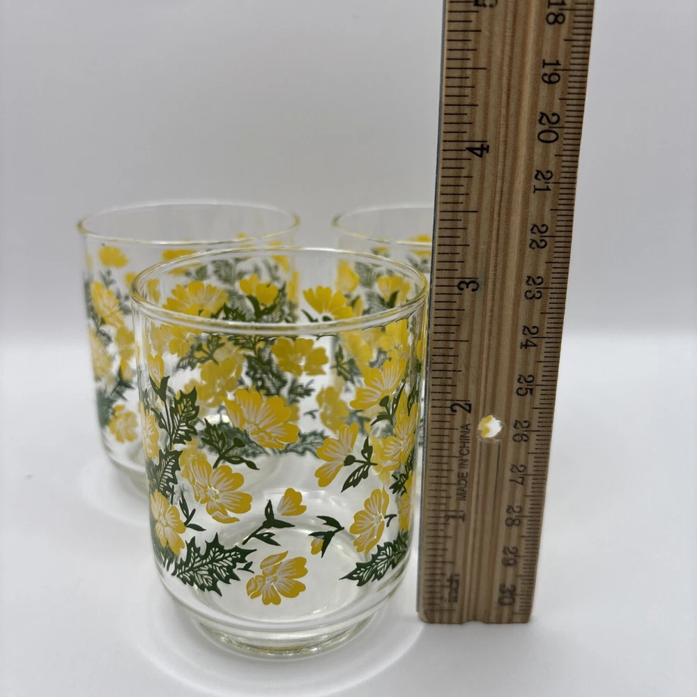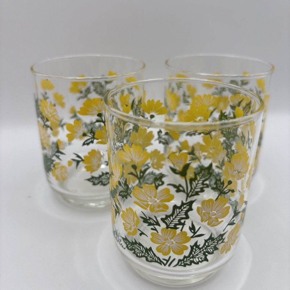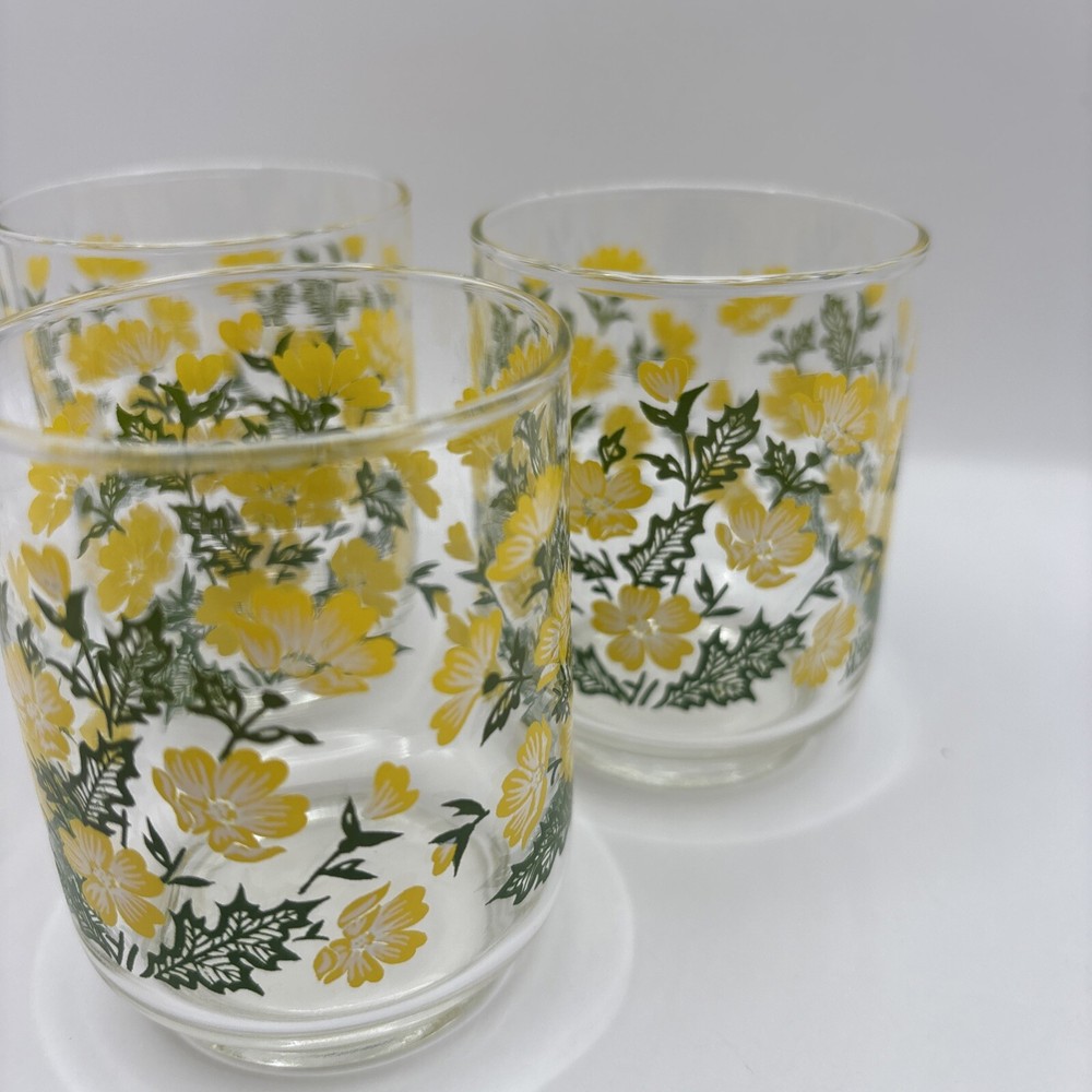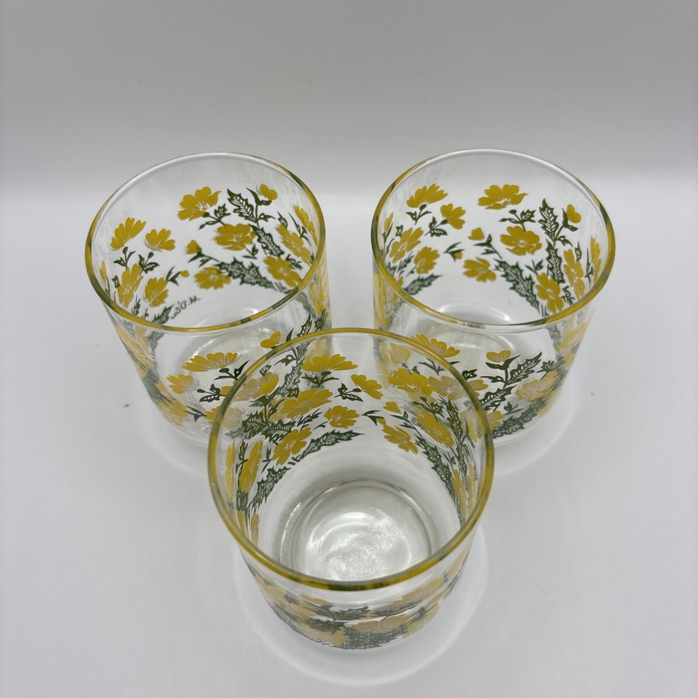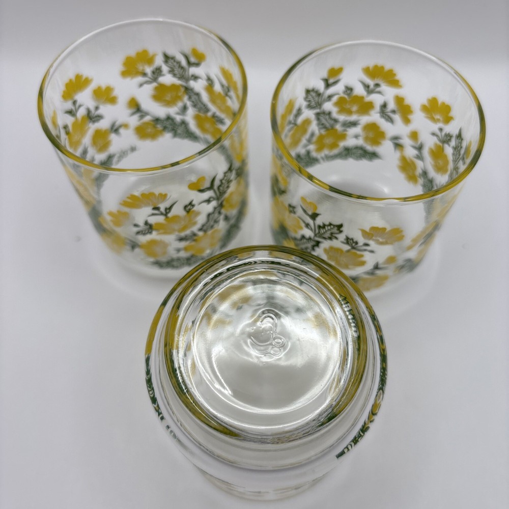 HomeVintage Libbey M. Dia Juice Glasses Set of 3 with Yellow Floral Greenery