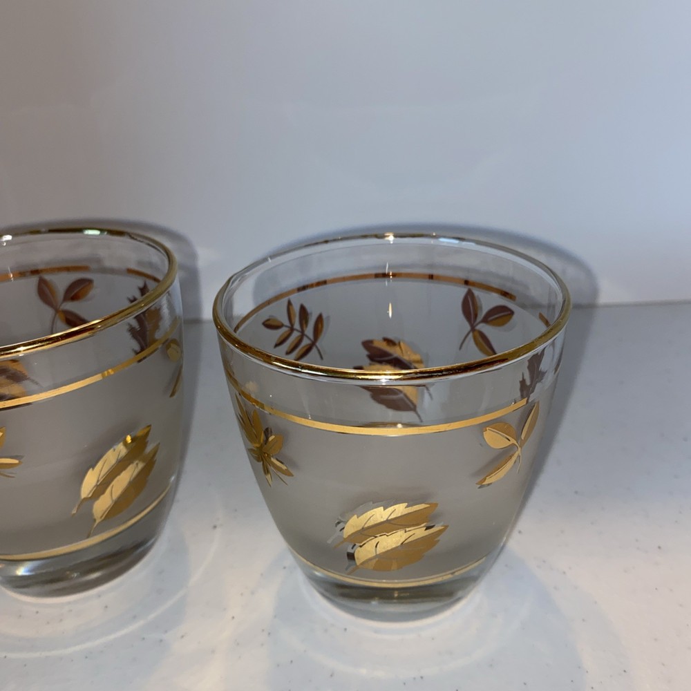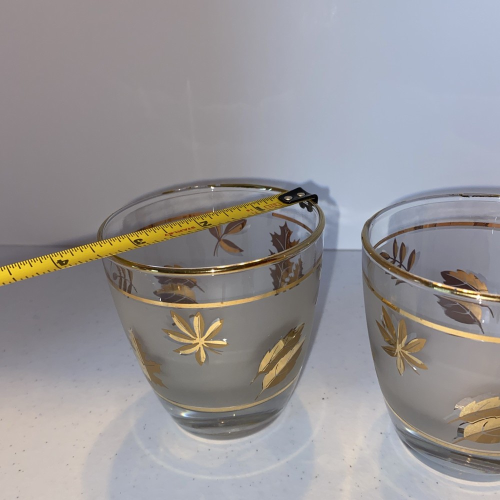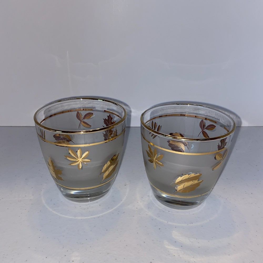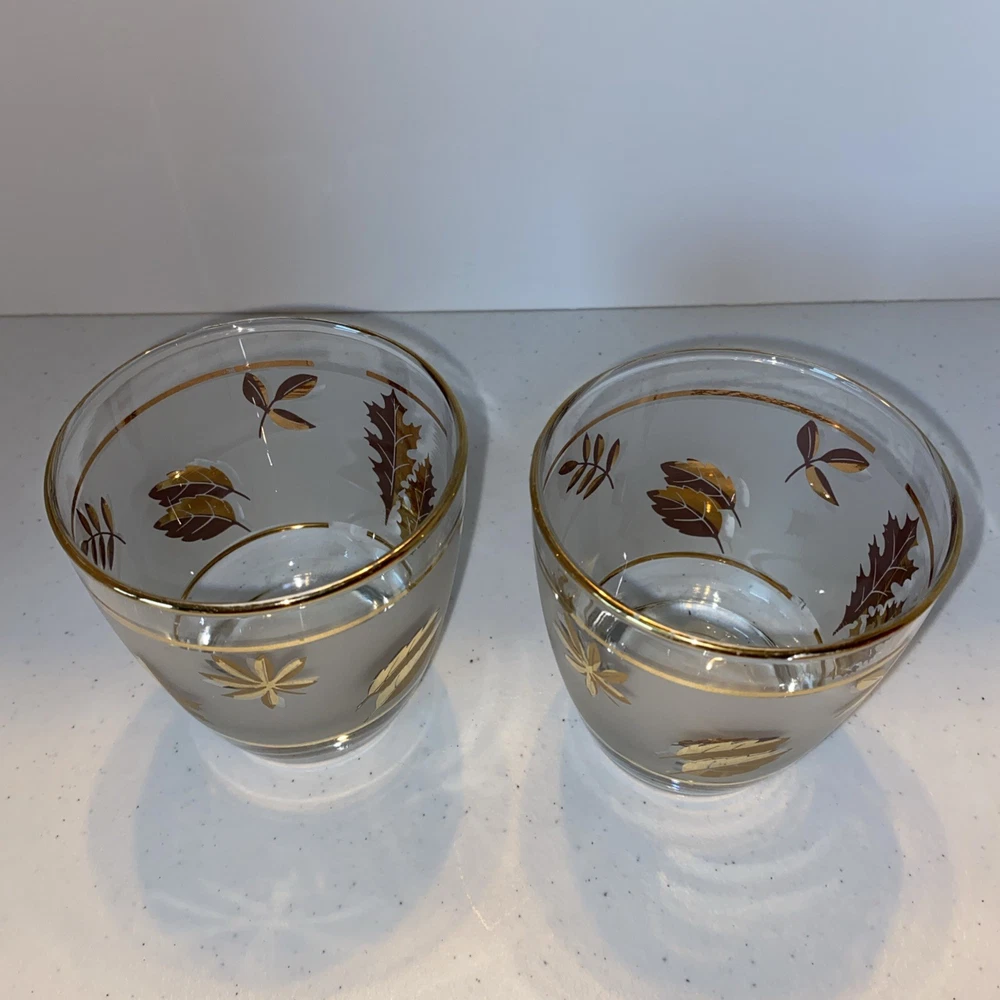 Vintage Libbey MCM frosted golden foliage short glasses set of 2