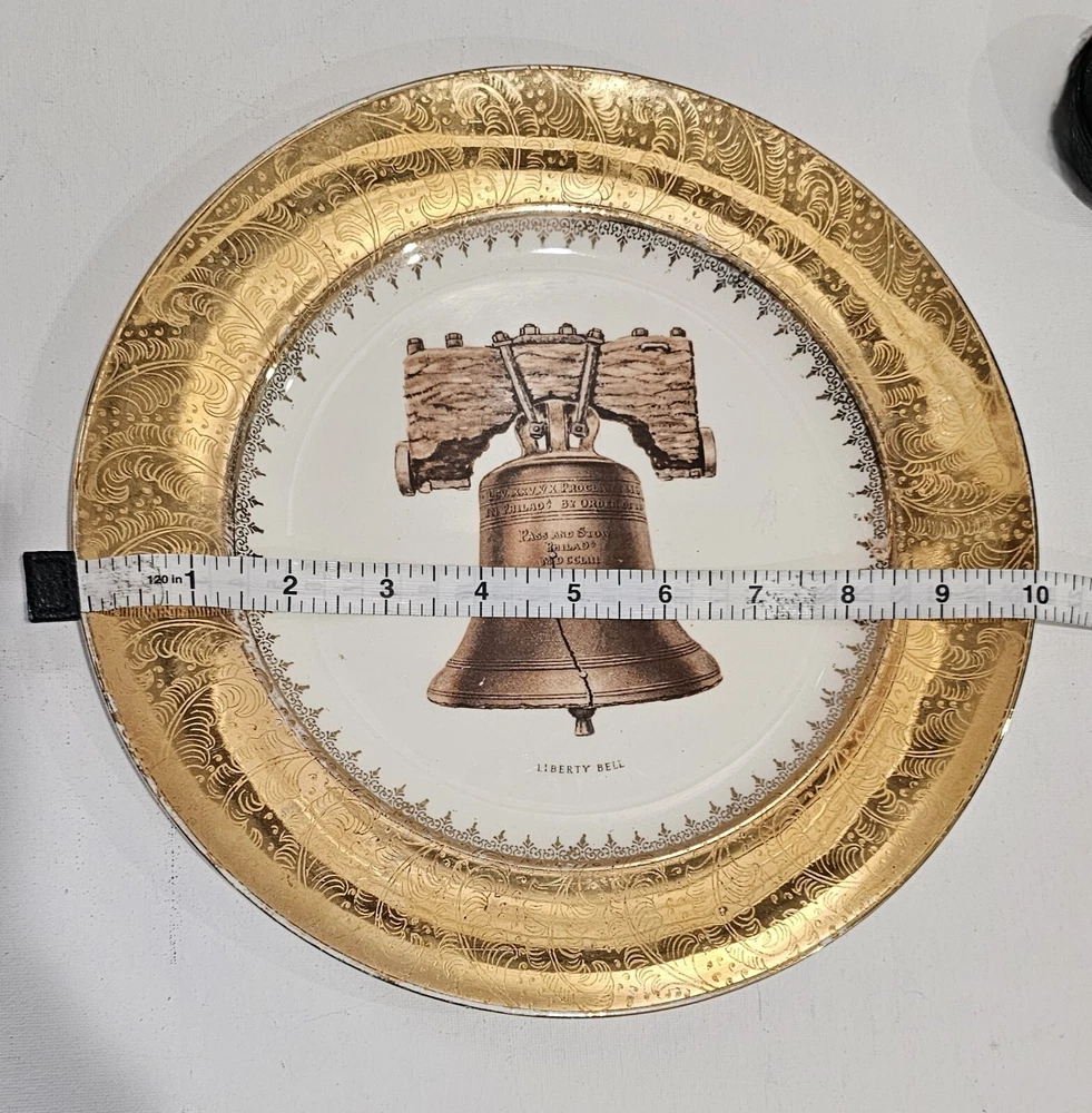 Vintage Liberty Bell Plate Heavy 22K Gold Trim Souvenir 10" Plate Atlas China/G