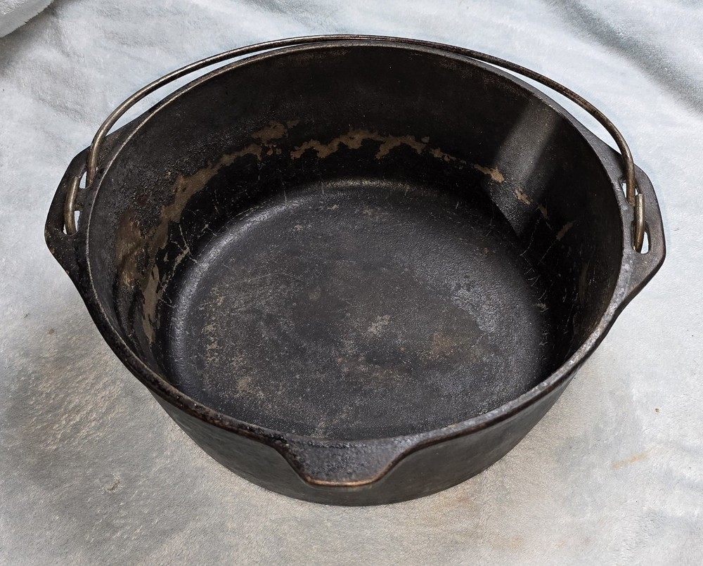 This vintage Dutch oven is a collectible piece of cookware made in the USA. The cast iron material ensures even heat distribution, making it suitable for gas stoves. The 10.25" diameter and inclusion of a lid add to its functionality for cooking a variety of dishes. With its classic design and quality construction, this Dutch oven is a stylish and practical addition to any kitchen.
