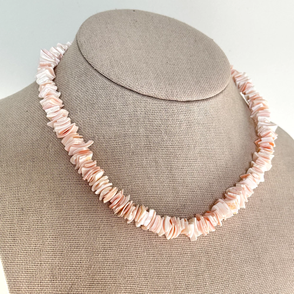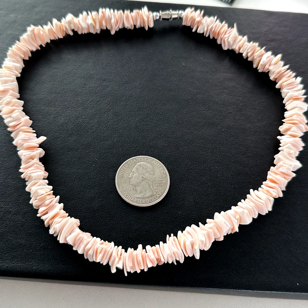 Lovely Vintage Light Pink Puka Shell Beaded Chip Necklace Length: 16" Width: 10mm Very good condition. - Fast shipping, I ship the same or next business day! I also combine shipping. - Thank you so much for shopping with me and please check out my other jewelry listings, I post new pieces daily !