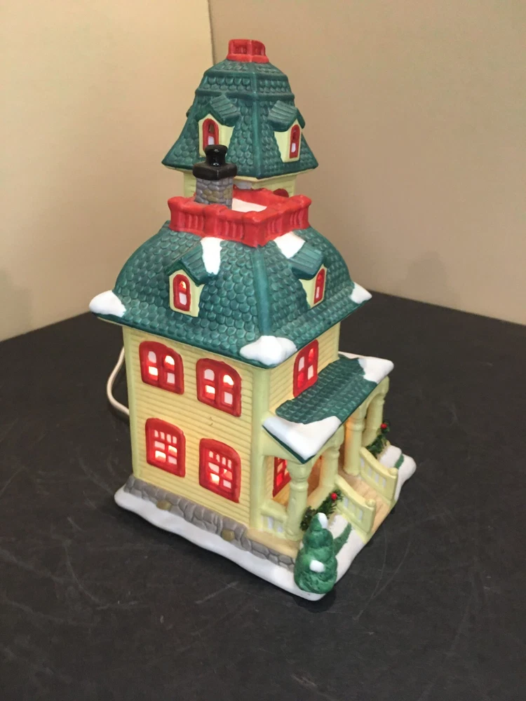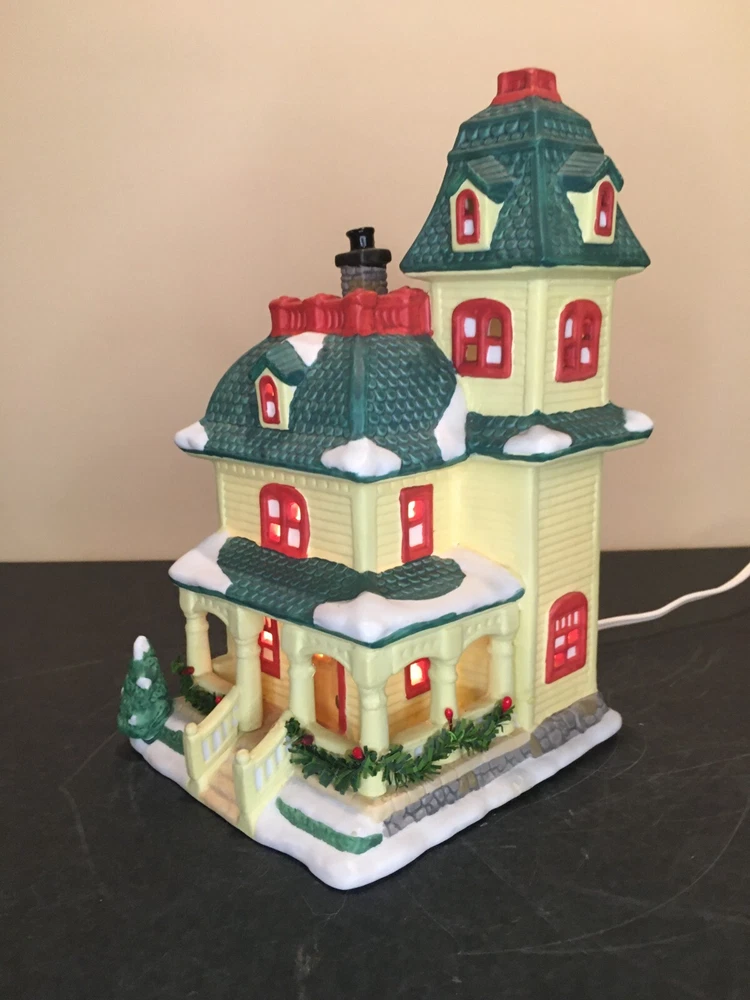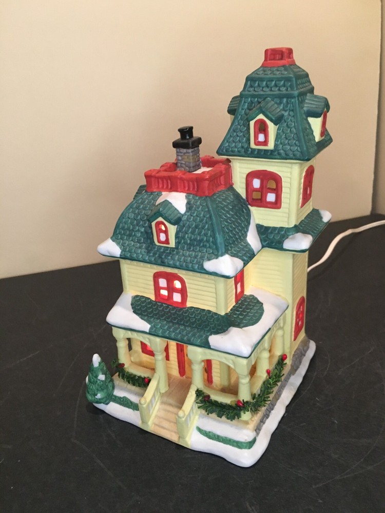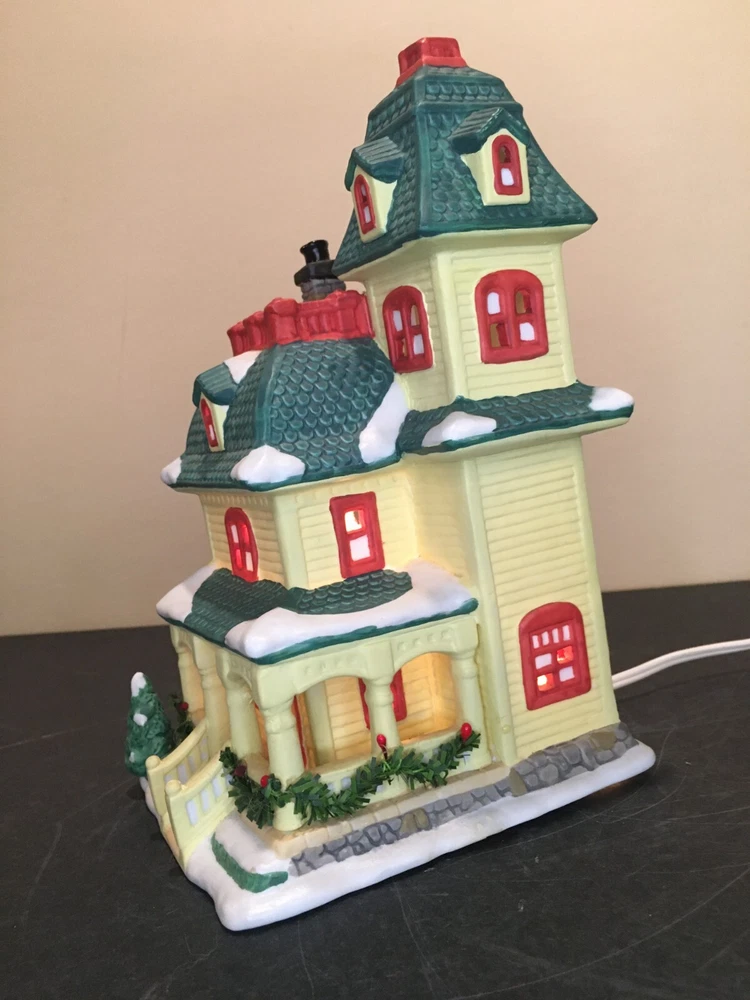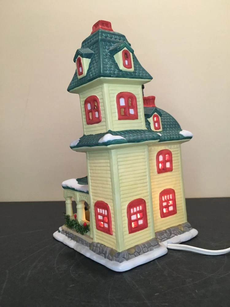 **Vintage SEASONAL SPECIALTIES LIGHTED CHRISTMAS VILLAGE LEMON VICTORIAN HOUSE Vintage Seasonal Specialties Lighted Christmas Valley Village Lemon-Yellow & Green 3-Story Victorian House. Excellent condition, Includes light cord. 1996 Approx 5" x 5 1/2" x 9" tall. ALL PHOTOS ARE OF THE ACTUAL ITEM BEING SOLD.