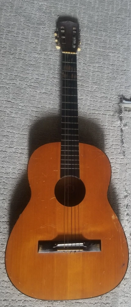 Vintage Lignatone Acoustic guitar. Missing of the strings, see pics. Guitar has some scratches and a small chip. Feel free to message me for more pics or info on this guitar.