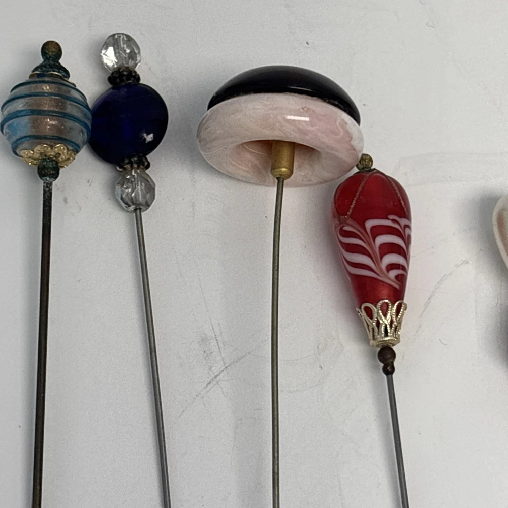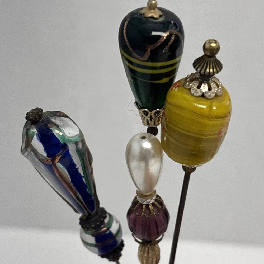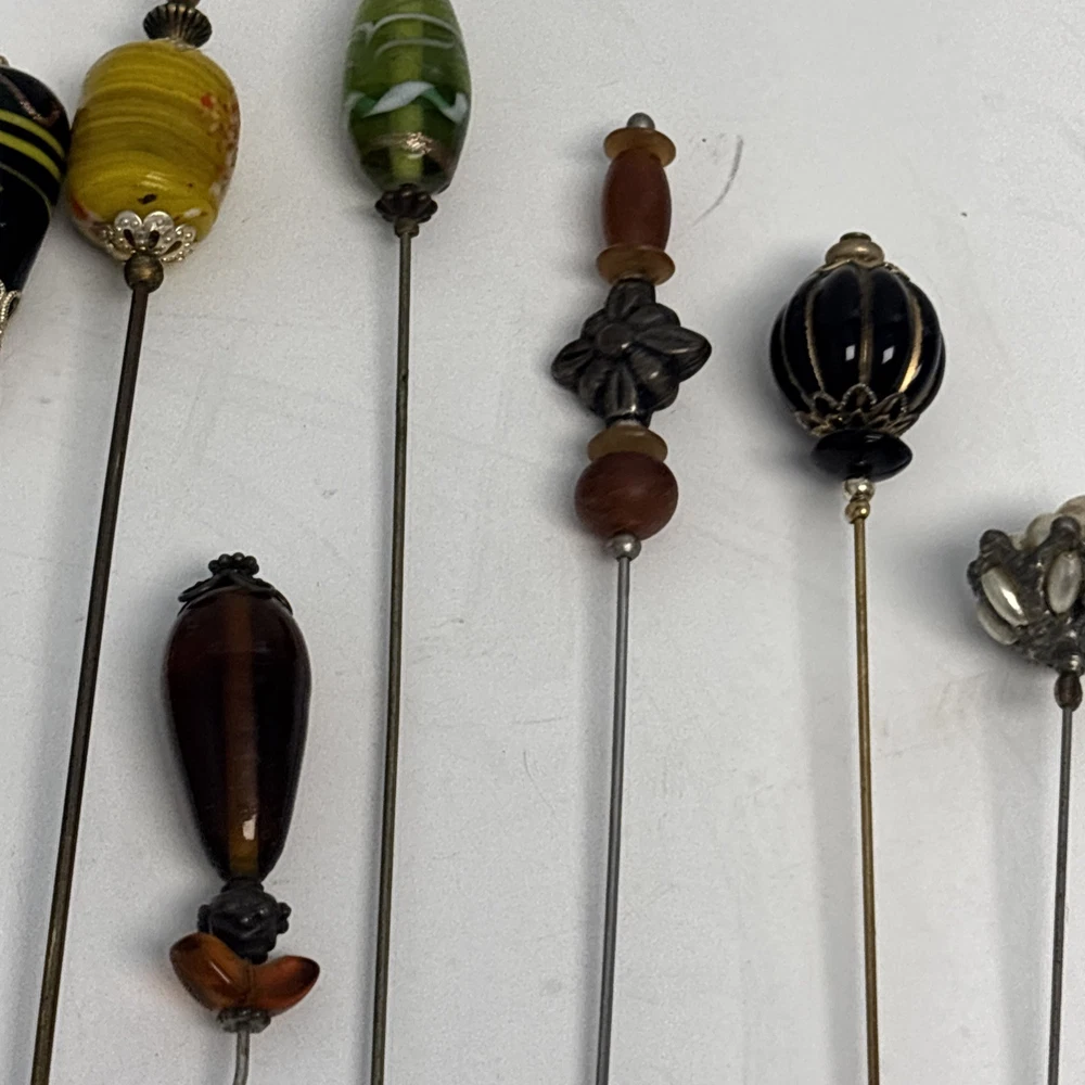 Antique Rhinestone & Celluloid Hat Stick Pins - Pair