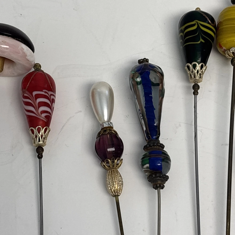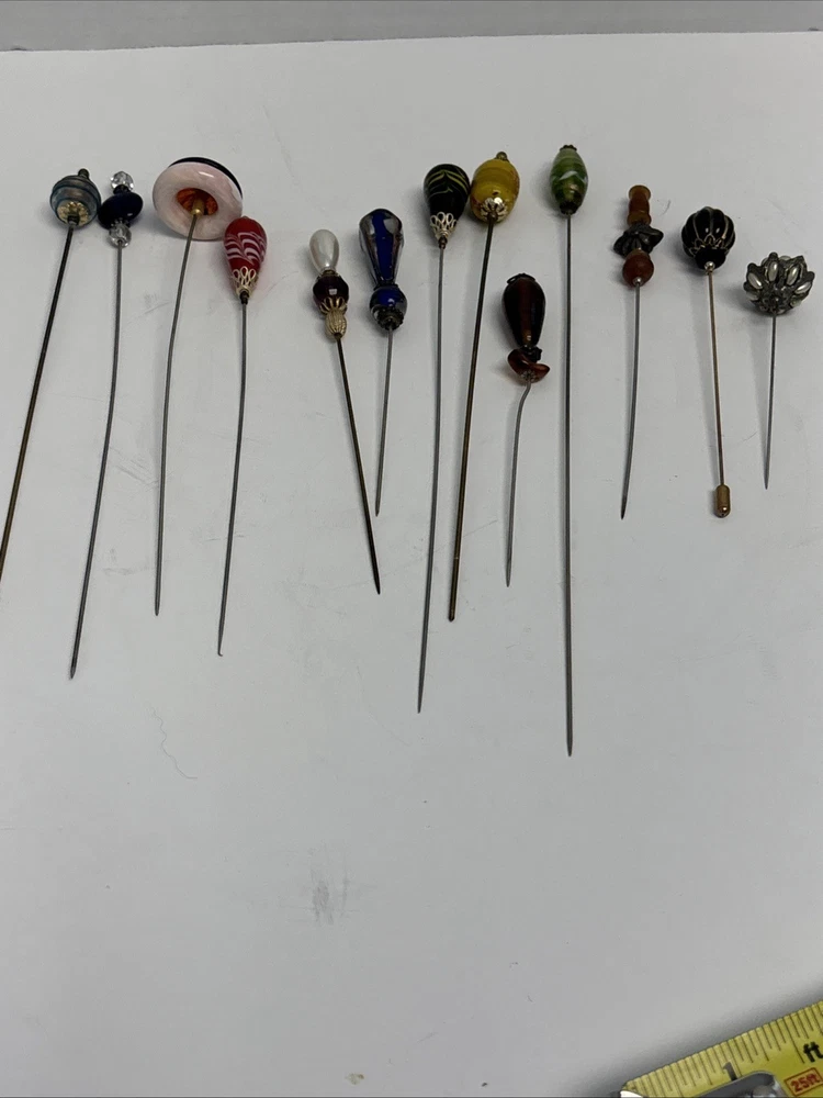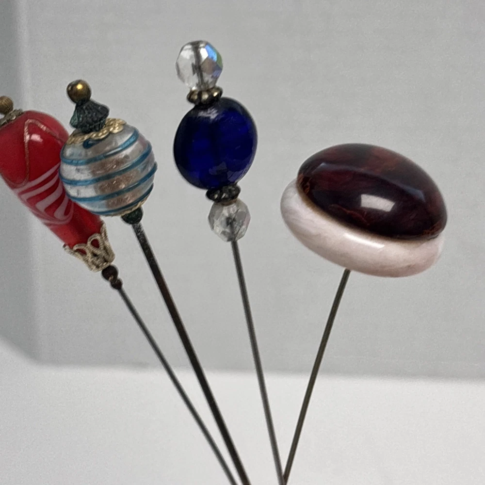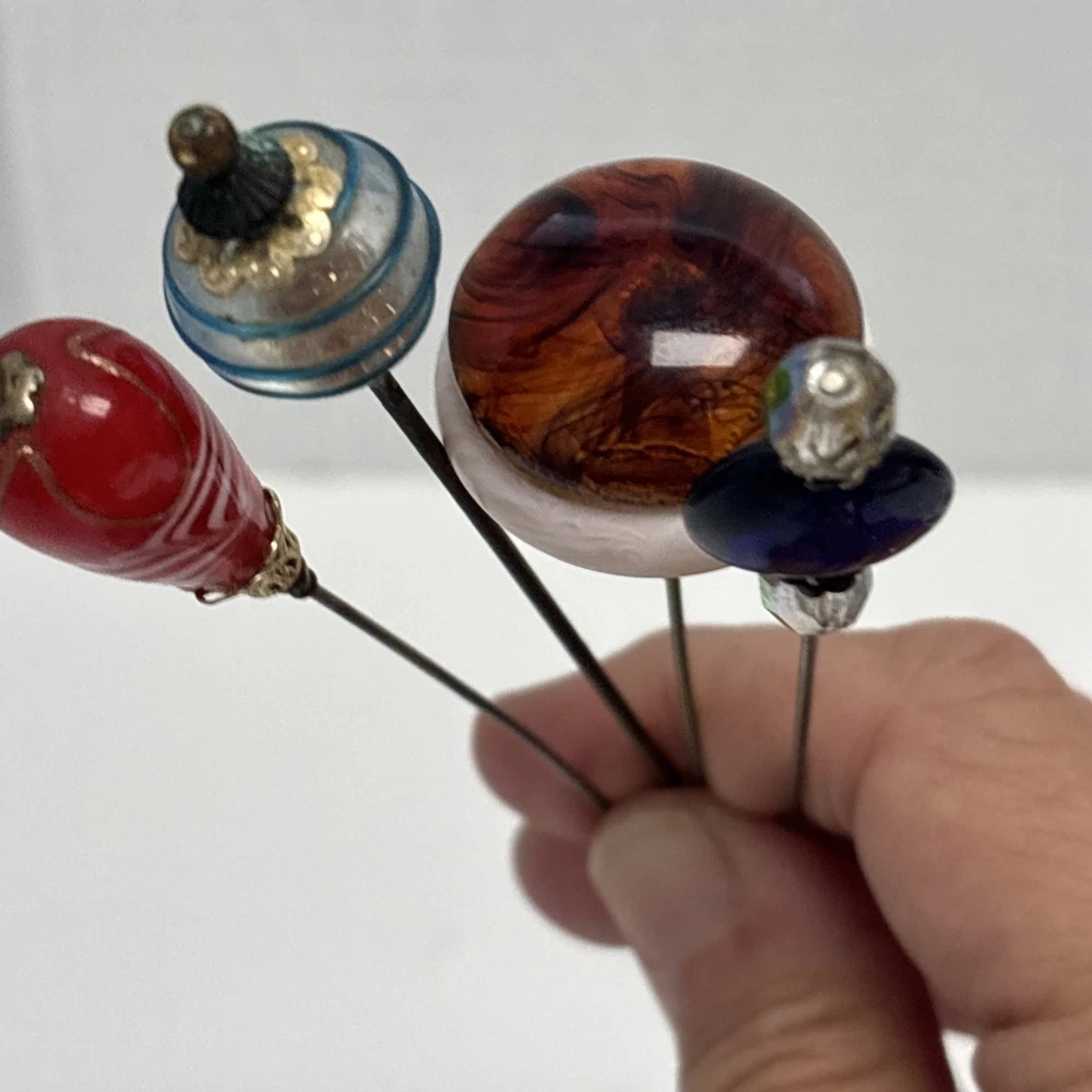 Antique Rhinestone & Celluloid Hat Stick Pins - Pair