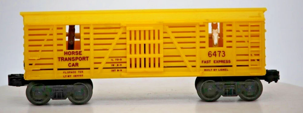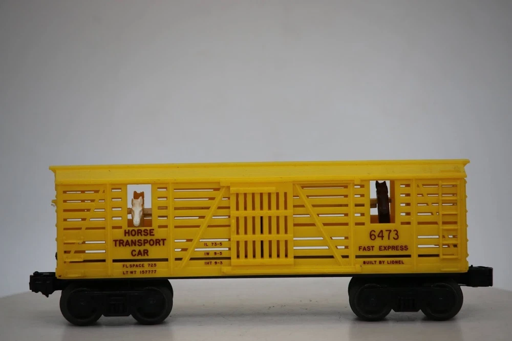 Vintage Lionel #6473 O Gauge Yellow Fast Express Horse Transport Car Model Train SKU#009361 PLEASE READ BEFORE PURCHASING Condition: Please review all photos carefully for details on the item's condition. Photos are part of the description, and any notable flaws will be highlighted. Combined Shipping: If purchasing multiple items, request a revised invoice before paying to ensure accurate combined shipping costs. eBay's system may not calculate this correctly, leading to overcharges. Lighting Disclaimer: Photos are taken under bright lighting to highlight details, which may cause slight variations in color or hue depending on your lighting. If you need additional photos (e.g., in natural light) or more details, please ask before purchasing. As-Is Items: Items come AS-IS. The way they appear in our pictures is how the Item will arrive to you. What's Included: Only the items shown in the photos and described in the listing are included in the purchase. We strive to describe items thoroughly and provide clear photos. If you have any questions or concerns not addressed in the listing, feel free to ask before purchasing. Thank you for shopping with us!