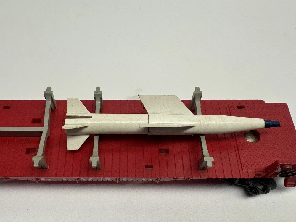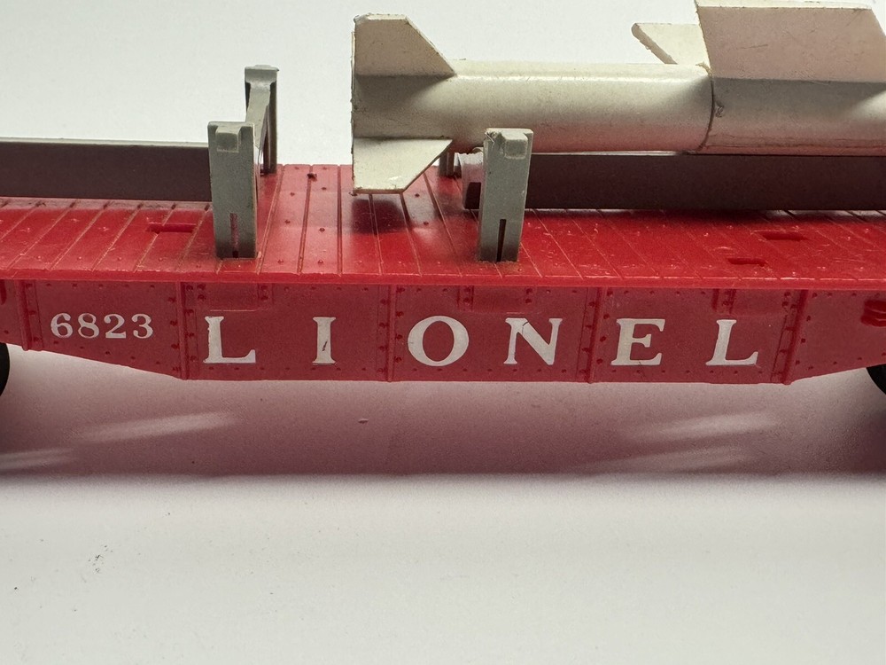 1. Brand: Lionel 2. Item Description: GENTLY USED VINTAGE Lionel 6823 IRBM O Scale Missile Car - Only 1 Missile Inlcuded 3. Condition: This item is in gently used condition. Signs of use include minor scratches and scuffs. Overall, this item is in 85% cosmetic, good condition. This unit is fully working condition. The pictures are taken from the actual item on sale. 4. Color: 5. Included Items: A. Included: comes with everything on the attached photos B. Not Included: 6. Suggested Retail Price: $ 7. Product Features: