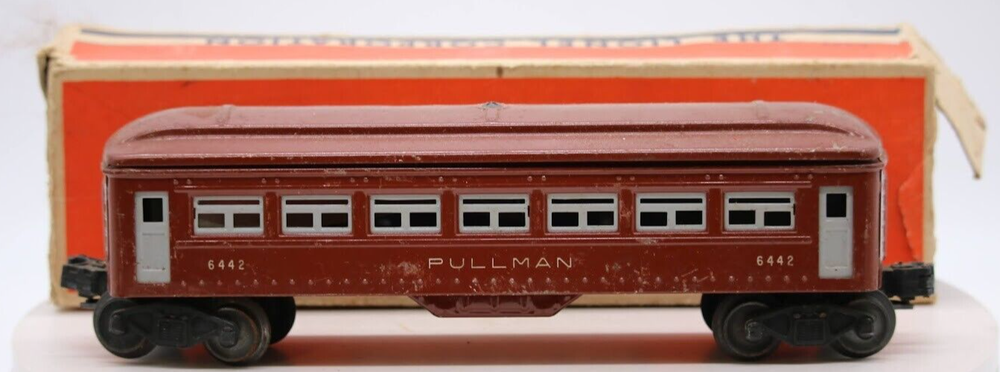 Lionel Post-War Tin Litho Pullman Passenger Car 6442 SKU#003416 If you are purchasing more than one item from us and would like combined shipping, PLEASE request an adjusted invoice from us while still in the cart and BEFORE paying. eBay does not usually calculate combined shipping accurately and you might get overcharged. Please be aware that when we photograph items, we use lighting that will show the details well. Although we try to present the product as accurately as possible, the lighting may affect the overall look of the item by appearing lighter/darker or possibly a different hue than the actual item. Depending on the type of lighting you have in your home, there may be some differences between the photos and the actual item. If this is a concern of yours, please feel free to request additional photos made in natural lighting or ask for a more detailed description of the item PRIOR TO PURCHASE! PLEASE NOTE: We greatly appreciate your interest in our item for sale. We look forward to a pleasant, quick and satisfying transaction for everybody, so please note the following information before bidding. Thank you! ITEM DESCRIPTIONS: * We will try to describe items well and provide plenty of photos. Please review these carefully before bidding or purchasing. * Only the items pictured and described are what you will receive when purchased. * We will occasionally offer an item clearly marked "AS-IS". This means that we are not sure if it works because we are unable to test it for whatever reason. We will offer these at a discounted price than a similar "working" item. It is possible that these items will work fine, but it also is possible that these items are more useful for their parts. Please only bid on or purchase these items if you are well aware of this, as we will only provide refunds of actual item price (no shipping cost refunds) for these items. * If you have any questions that aren't addressed by the descriptions or photos, please feel free to ask before you bid. SHIPPING: * We usually do not offer shipping to international addresses, but ARE WILLING TO TAKE CONSIDERATIONS. * We try to pack items as carefully as possible, but damage may occur during shipping. If you receive an item that was damaged in shipping, please contact us and we will work with you to resolve the problem. * We will combine shipping costs for all items the same buyer purchases from us within 2 days. Please wait to pay for items until you're done shopping with us. Please contact us if you're expecting to buy more items from us, or to have us adjust the shipping costs. * We will usually ship items out within 24 hours of payment being received Sunday through Friday at noon. We will notify the buyer if there will be a delay in shipping for some reason. Please allow additional time for holidays and weekends when the post office is closed. If payment is received after noon (EST) on Friday, the item might not be shipped until the following Monday. * We do try to recycle shipping materials as much as possible. RETURNS: We abide by eBay's Money Back Guarantee. We definitely want our customers to be happy with their purchase! You may return an item within 30 days of receiving it with the following guidelines: * If the item is defective or damaged (unless we clearly marked the listing "AS-IS"), the buyer will receive a full refund after the buyer returns it and it is received by us. Customers who falsely claim their item is defective, damaged, or not as described in order to receive a full refund and free return shipping will be permanently blocked from making future purchases from us. * If the item is as described (including "AS-IS" items) and the buyer decides for any other reason than defective/damaged to return it, only the actual price of the item will be refunded once it has been returned and it is received by us. The buyer will be asked to pay all original and return shipping charges. This includes all reasons other than defective/damaged, including wrong size, wrong type, changed mind, etc. All "AS-IS" items will fall into this category of return. Please make sure the item is what you want before purchasing it. * Please contact us before initiating a refund request. FEEDBACK: We always leave feedback at the end of transaction. We consider the transaction to be over when we receive feedback from the buyer confirming the item arrived satisfactorily. If you are unsatisfied with your purchase please contact us before leaving neutral or negative feedback. WE APPRECIATE POSITIVE FEEDBACK IF YOU ARE SATISFIED WITH YOUR PURCHASE! THANK YOU FOR YOUR INTEREST IN THIS ITEM!