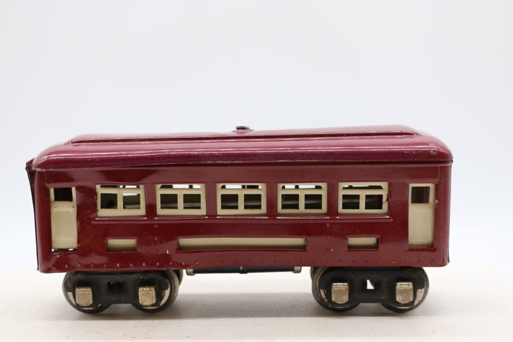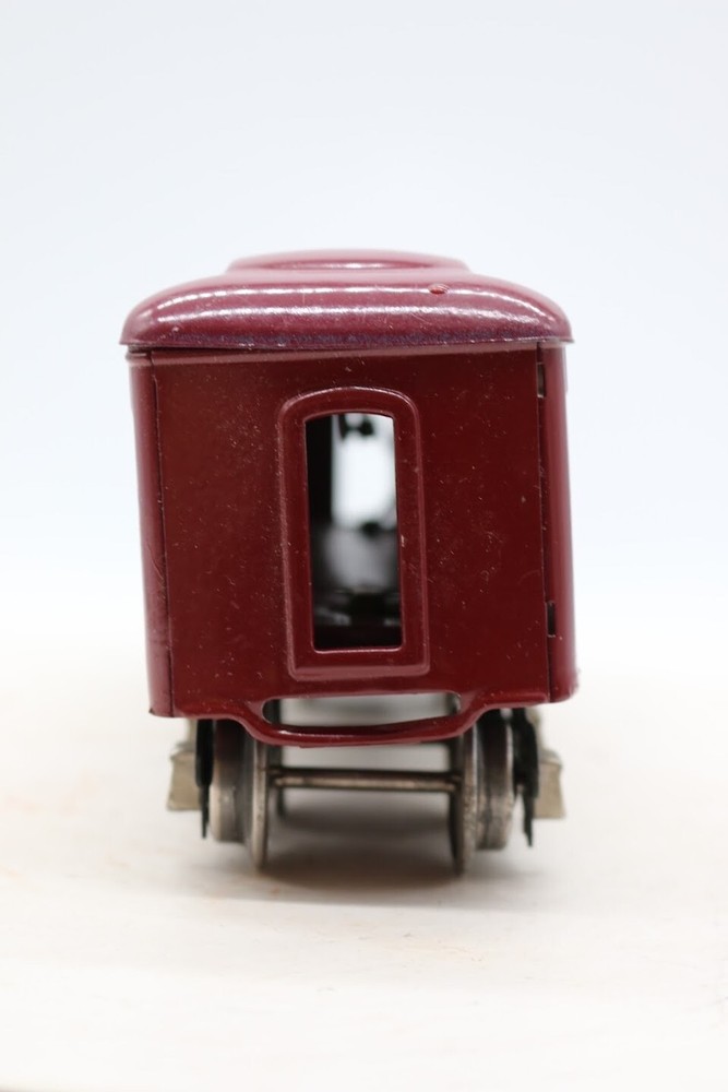 Vintage Lionel Pre War Pullman Car Red/Cream Unnumbered. No Box Look closely at the pictures to see further details. We ships USPS PLEASE see photos for detailed condition!! There may be pieces that are missing or broken including, but not limited to, couplers, brake wheels, steps, ladders, railings, etc. May need detailed cleaning. PLEASE LOOK AT THE PHOTOS CAREFULLY BEFORE PURCHASING!! If you are purchasing more than one item from us and would like combined shipping, PLEASE request an adjusted invoice from us while still in the cart and BEFORE paying. Ebay does not usually calculate combined shipping accurately and you might get overcharged. Please be aware that when we photograph items, we use lighting that will show the details well. Although we try to present the product as accurately as possible, the lighting may affect the overall look of the item by appearing lighter/darker or possibly a different hue than the actual item. Depending on the type of lighting you have in your home, there may be some differences between the photos and the actual item. If this is a concern of yours, please feel free to request additional photos made in natural lighting or ask for a more detailed description of the item PRIOR TO PURCHASE! PLEASE NOTE: We greatly appreciate your interest in our item for sale. We look forward to a pleasant, quick and satisfying transaction for everybody, so please note the following information before bidding. Thank you! ITEM DESCRIPTIONS: * We will try to describe items well and provide plenty of photos. Please review these carefully before bidding or purchasing. * Only the items pictured and described are what you will receive when purchased. * We will occasionally offer an item clearly marked "AS-IS". This means that we are not sure if it works because we are unable to test it for whatever reason. We will offer these at a discounted price then a similar "working" item. It is possible that these items will work fine, but it also is possible that these items are more useful for their parts. Please only bid on or purchase these items if you are well aware of this, as we will only provide refunds of actual item price (no shipping cost refunds) for these items. * If you have any questions that aren't addressed by the descriptions or photos, please feel free to ask before you bid. SHIPPING: * We offer international shipping, if you have any questions please reach out. * We try to pack items as carefully as possible, but damage may occur during shipping. If you receive an item that was damaged in shipping, please contact us and we will work with you to resolve the problem. * We will combine shipping costs for all items the same buyer purchases from us within 2 days. Please wait to pay for items until you're done shopping with us. Please contact us if you're expecting to buy more items from us, or to have us adjust the shipping costs. * We will usually ship items out within 24 hours of payment being received Sunday through Friday at noon. We will notify the buyer if there will be a delay in shipping for some reason. Please allow additional time for holidays and weekends when the post office is closed. If payment is received after noon (EST) on Friday, the item might not be shipped until the following Monday. * We do try to recycle shipping materials as much as possible. RETURNS: We abide by eBay's Money Back Guarantee. We definitely want our customers to be happy with their purchase! You may return an item within 30 days of receiving it with the following guidelines: * If the item is defective or damaged (unless we clearly marked the listing "AS-IS"), the buyer will receive a full refund after the buyer returns it and it is received by us. Customers who falsely claim their item is defective, damaged, or not as described in order to receive a full refund and free return shipping will be permanently blocked from making future purchases from us. * If the item is as described (including "AS-IS" items) and the buyer decides for any other reason than defective/damaged to return it, only the actual price of the item will be refunded once it has been returned and it is received by us. The buyer will be asked to pay all original and return shipping charges. This includes all reasons other than defective/damaged, including wrong size, wrong type, changed mind, etc. All "AS-IS" items will fall into this category of return. Please make sure the item is what you want before purchasing it. * Please contact us before initiating a refund request. FEEDBACK: We always leave feedback at the end of transaction. We consider the transaction to be over when we receive feedback from the buyer confirming the item arrived satisfactorily. If you are unsatisfied with your purchase please contact us before leaving neutral or negative feedback. WE APPRECIATE POSITIVE FEEDBACK IF YOU ARE SATISFIED WITH YOUR PURCHASE! THANK YOU FOR YOUR INTEREST IN THIS ITEM!