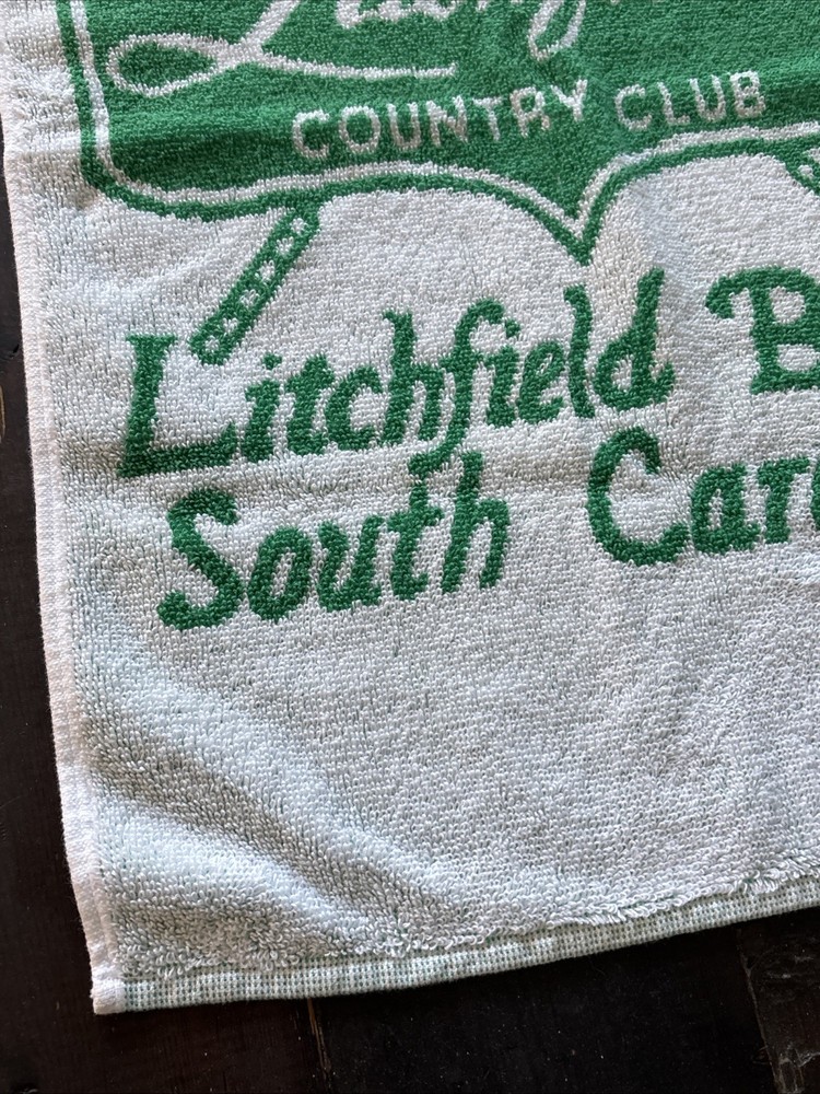 Vintage Litchfield Country Club Golf Towel Litchfield Beach South Carolina USA. Good preowned condition showing normal signs of wear/use. There are a couple of small snags noticeable mainly on close inspection. It is approximately 15“ x 24“. Please see photos for design and condition. Detail details. Don’t hesitate to message me with any questions.