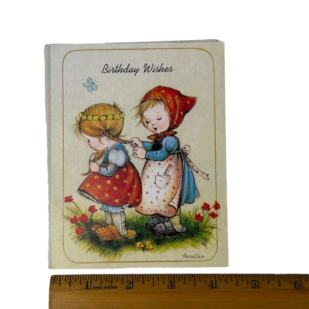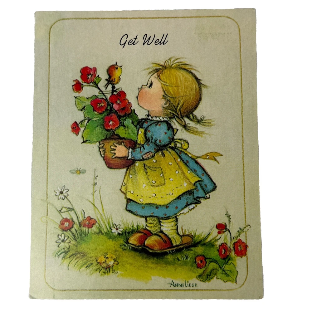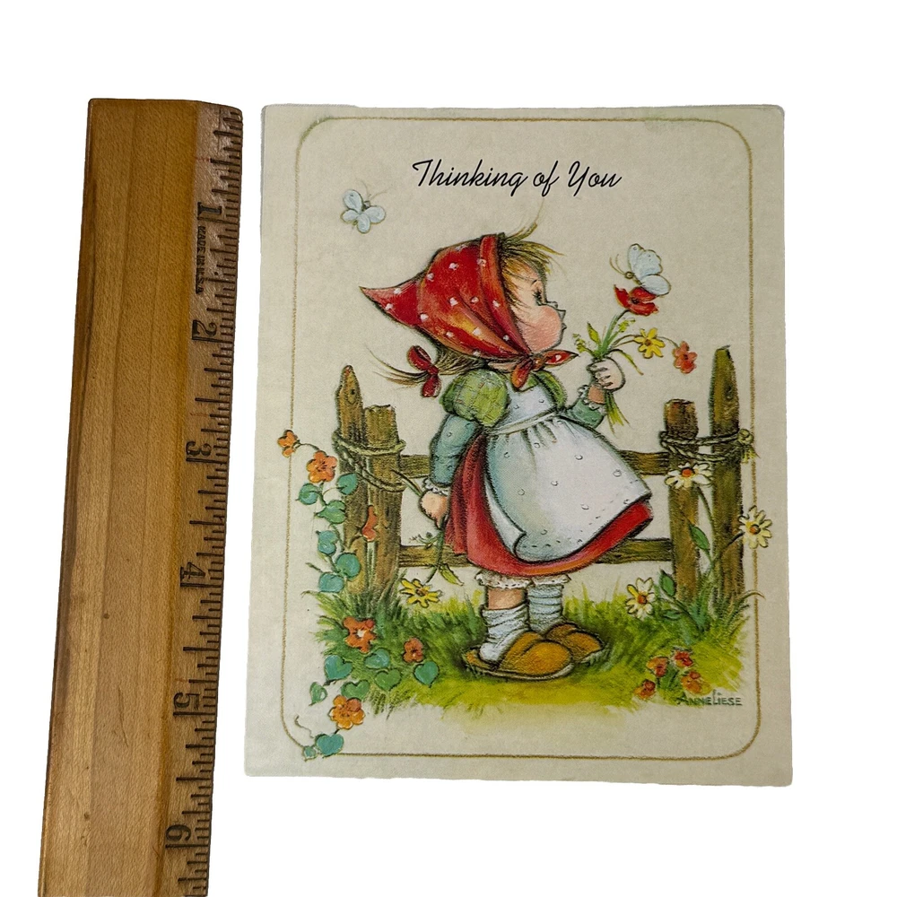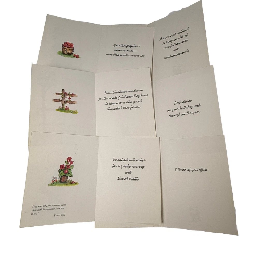 Set of 6 vintage Little Helper’s greeting cards - assorted themes, Get Well, Thank You, etc. Made in the USA by Children’s Mission Fund in 1990. Interior includes a bible verse and message. Art work is signed Anne Liese. Envelopes are included. All are unused and in good vintage condition. Please see photos for more details and measurements.