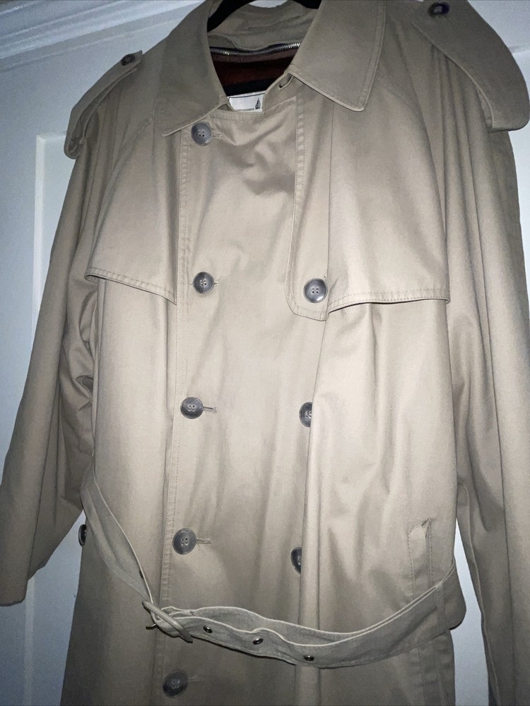 Vintage London Fog Men’s Tan Trench Coat Size 40 with Removable Liner & Belt