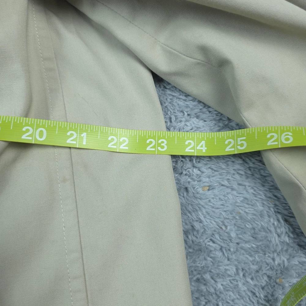 Brand: London Fog Line: London Fog Maincoats "weatherwear of distinction" by The Londontown Mfg. Co., Baltimore. Item: Mens single-breasted trench-style raincoat with classic pointed collar and mid-length overcoat silhouette. Color: Tan/khaki. Size on tag: 44 Regular (Mens). Material: Shell 50% polyester, 50% combed cotton Claeth cloth woven exclusively for London Fog. Country of origin: Made and styled by The Londontown Mfg. Co., Baltimore, Maryland, USA (per interior tag). Details: Covered button front placket, two front slash hand pockets, button-tab cuffs, raglan sleeves for easier layering, center back vent for movement, and water-repellent Claeth cloth fabric designed for everyday weather protection and classic dress outerwear use. Item is in gently worn pre-owned condition. Item may contain normal signs of wear, blemishes, discoloration, creases and/or other signs of distress. Photos depict the exact item you will receive including measurements . Please refer to photos for full details prior to purchasing. If need be please measure against a similar clothing item you own. Items are cleaned in accordance with eBay's policies and standards and stored in a smoke free weather controlled environment. Fast USPS Shipping - 30 Day Free Returns - Hats Ship in a Box