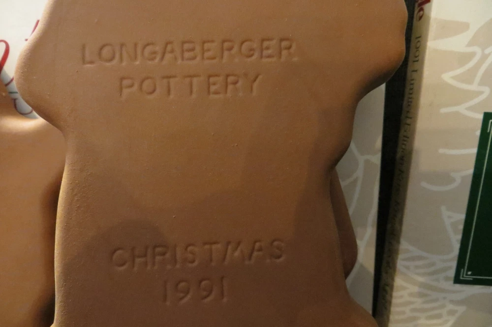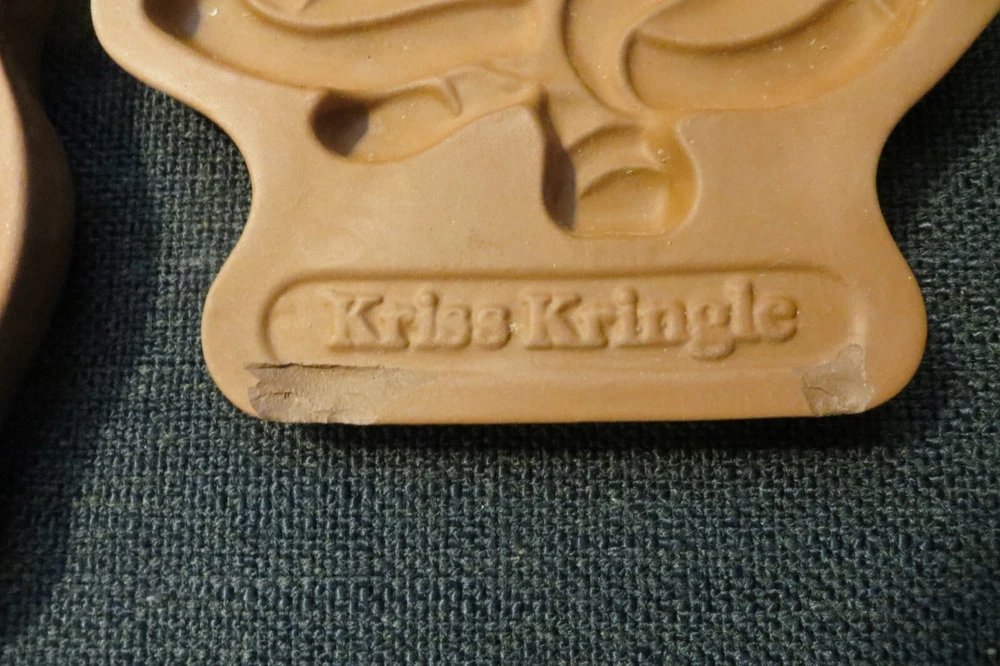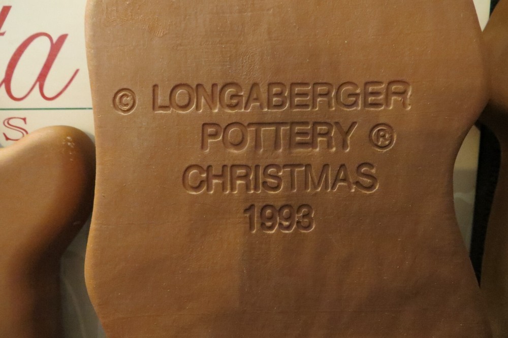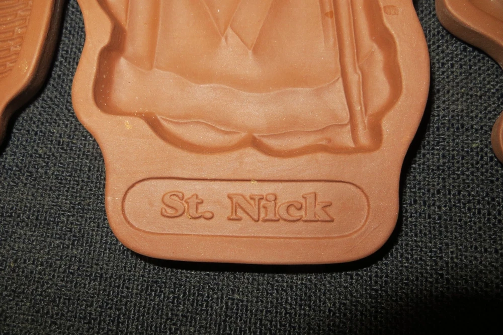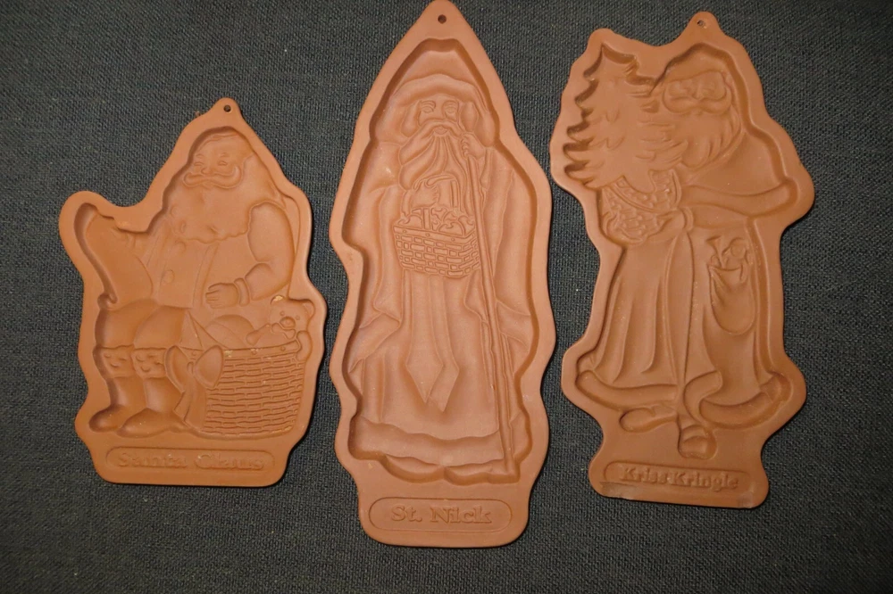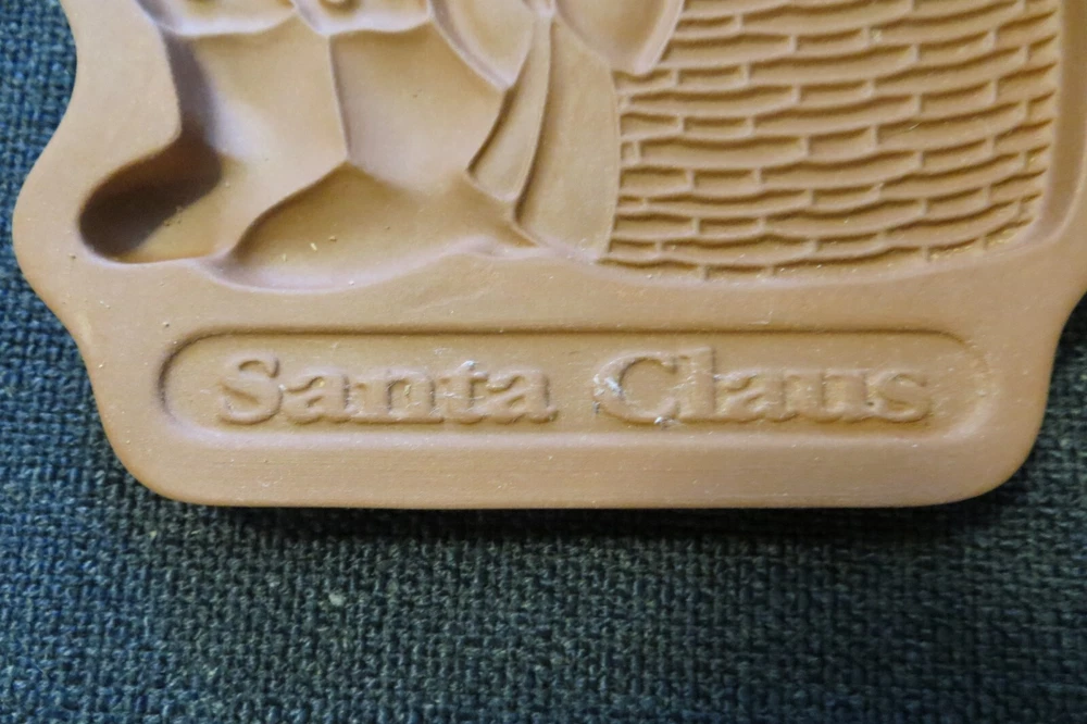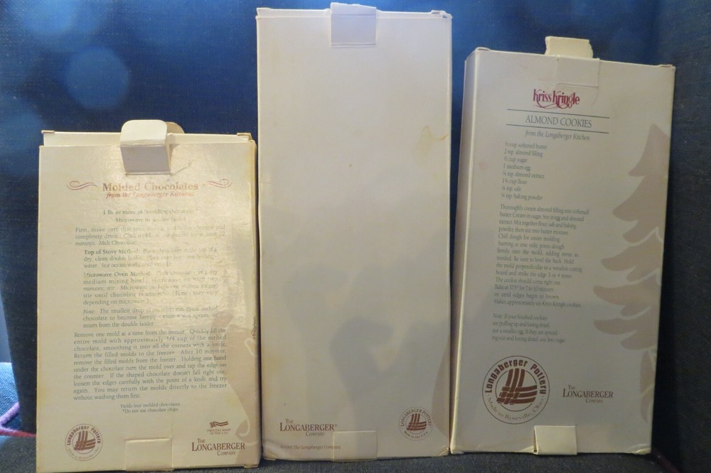3 Longaberger Christmas Pottery Cookie and Craft Molds 1991 (Santa), 1992 (St. Nick, 1993 (Kriss Kringle). Used and in original boxes. See photos.
