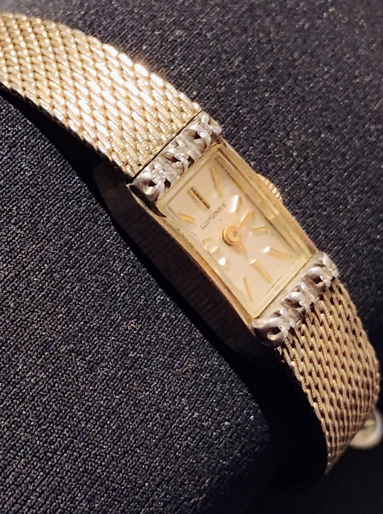 Vintage longines women's watch 10k g.f runs and works. it does have some small scratches as shown in pictures. 7.5" you can make it smaller band clip adjustable check photos for more detail and condition if you have any question contact me by email thank you and good luck (Note no papers no box sell as is.)