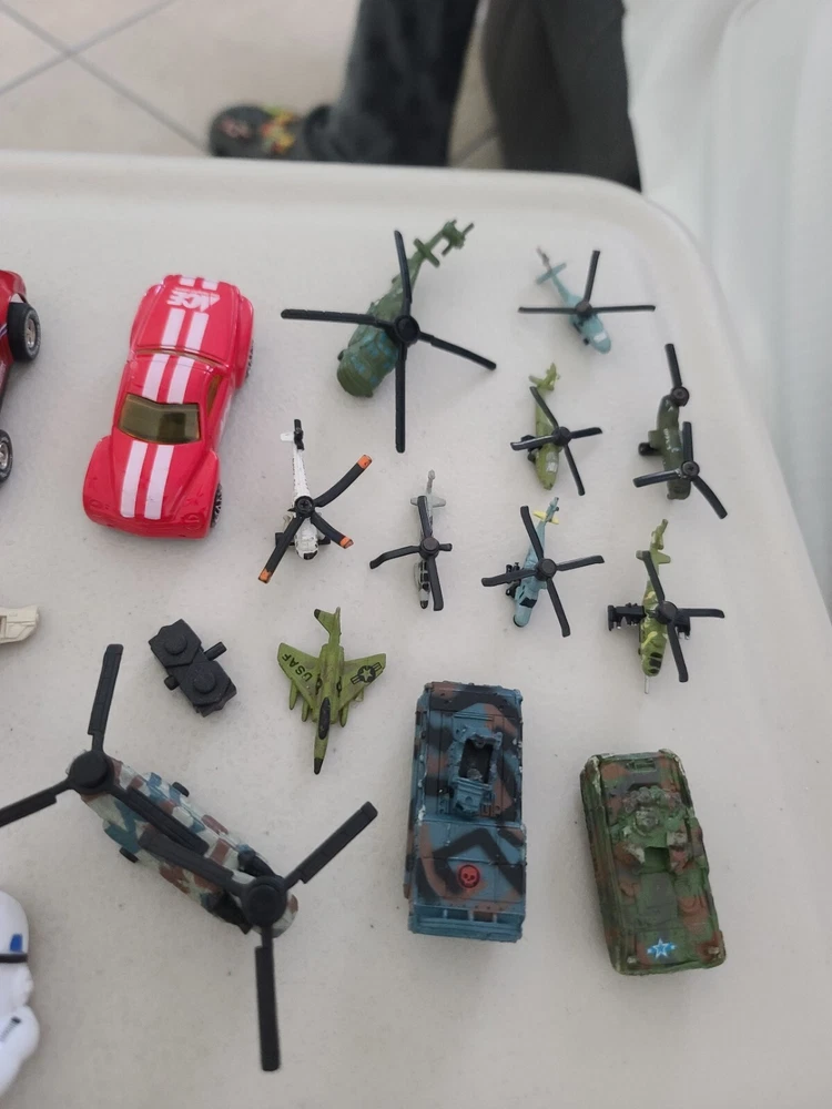 Some have wear, for the most part they are in good condition except for the helicopters as they have very heavy wear. Please see pictures for more details. You will receive: 41 loose figures, 12 Micro Machine Cars, 8 missing pieces, & 4 others. From a pet free/smoke free home.