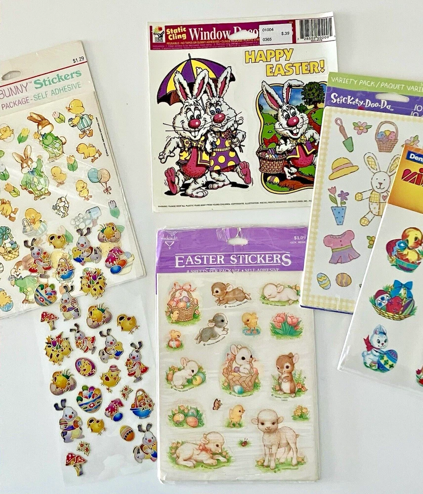 Vintage Lot Easter Stickers American Greetings Dennison Plus Others Dennison Pack Sealed Stickety- Doo-Da Sealed Boomer Bunny 1 Full Sheet plus a few extras Ambassador 4 full sheets