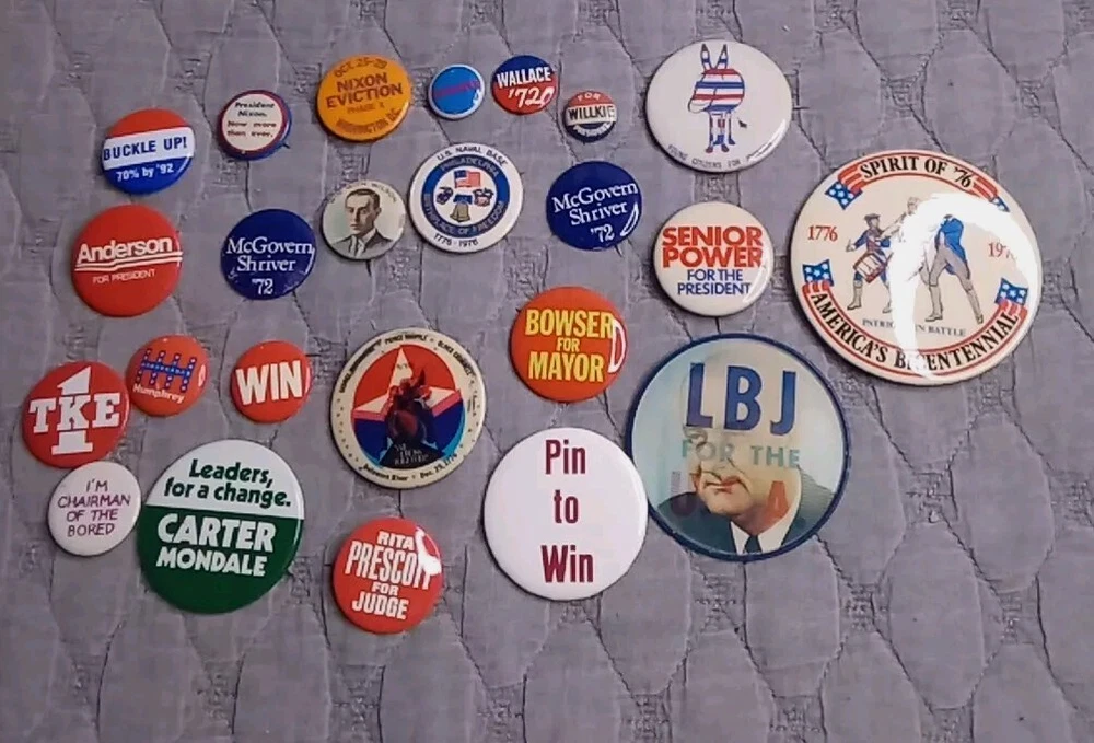 Vintage Lot Of 24 Presidential Campaign Election Political Pin Buttons Nixon Ect