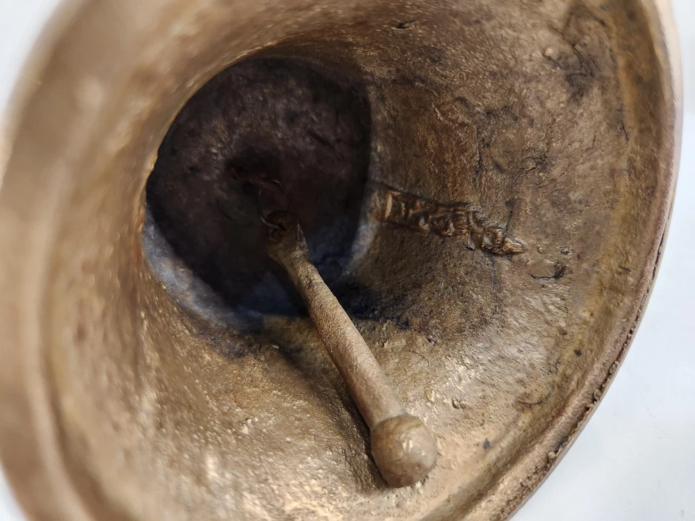 See photos for the best representation of condition, the Pegasus bell is really unique with the striker on the outside of the bell.