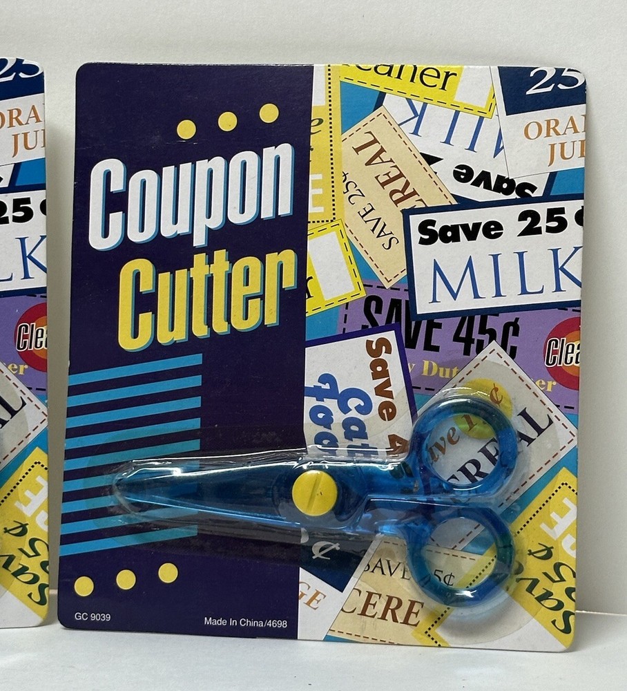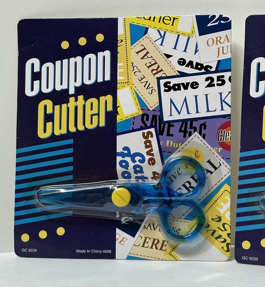Vtg Lot/2 Coupon Cutter Translucent Blue Plastic Scissors GC 9039 Sealed New