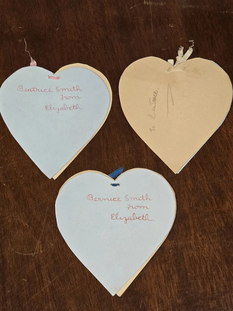 Vintage lot of three handmade from the looks of it Valentine's Day cards. All from Elizabeth, to Bernice Smith. See pics PLEASE ask any questions before bidding. Thanks for looking and check out my other auctions this week for other great items. I want happy customers. I ALWAYS COMBINE MULTIPLE ITEMS WON TO SAVE ON YOUR SHIPPING COSTS ALSO NOTE: If you prefer a shipping option you don't see, I'm always open to suggestion. International Buyers – Please Note: Import duties, taxes and charges are not included in the item price or shipping charges. These charges are the buyer's responsibility. Please check with your country's customs office to determine what these additional costs will be prior to bidding/buying. Powered by SixBit's eCommerce Solution
