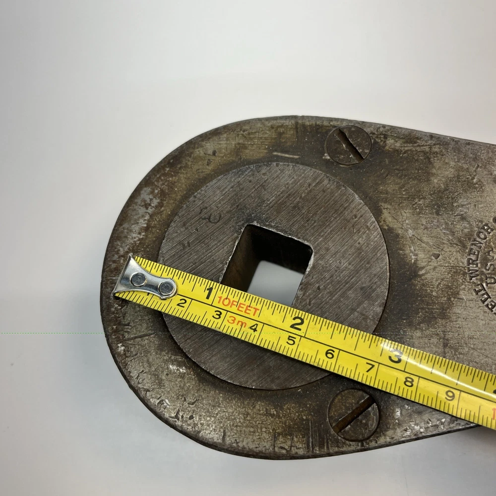 Marked Lowell Wrench Co Worcester Mass USA and No 26. Overall length is 20 in. Total weight is approximately 10 lbs 8 oz. Condition Used vintage condition. Shows surface wear, oxidation, and finish loss from age and use. Head and handle show impact marks and typical industrial wear. Knurled end cap present and intact.
